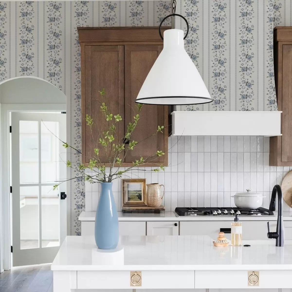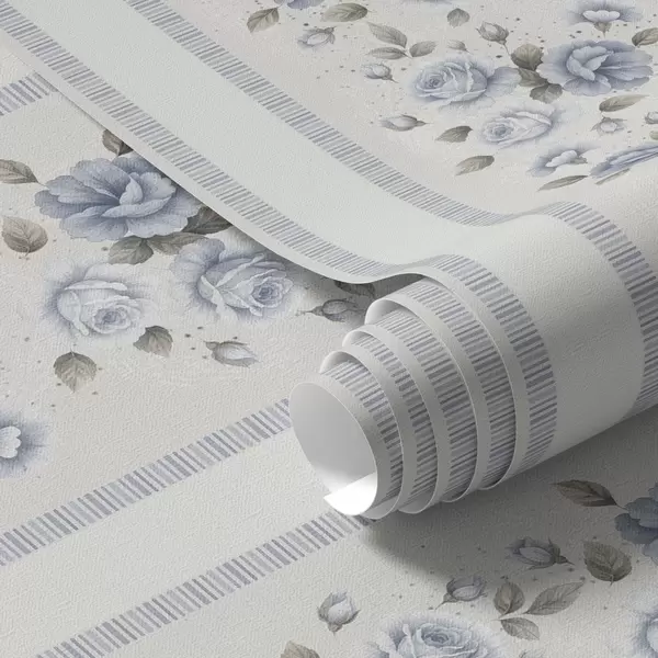 Tapetes Zilas rozes vertikālās joslās uz gaiša fona Nr. a00860