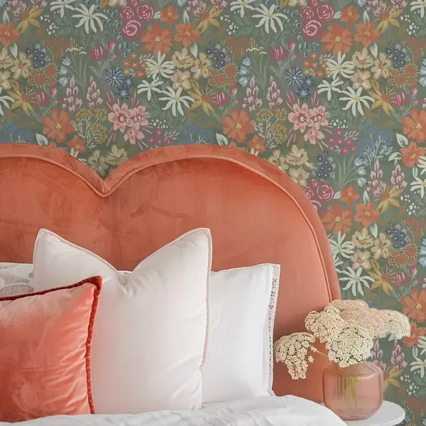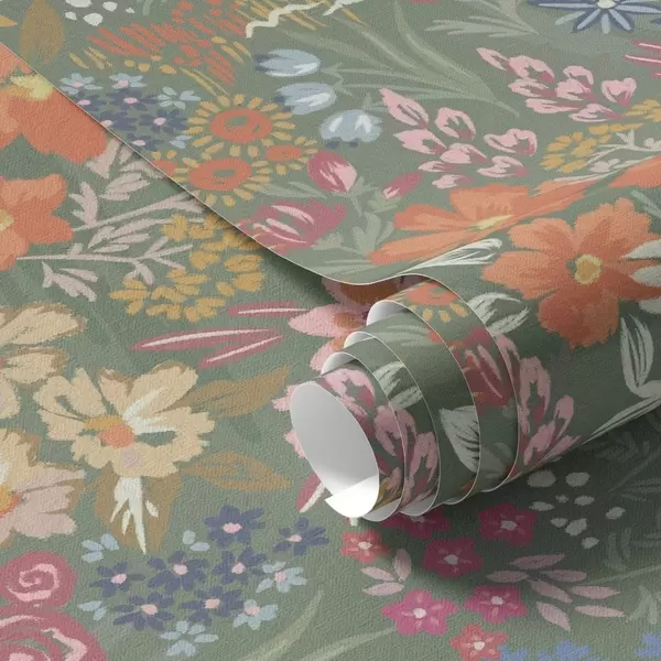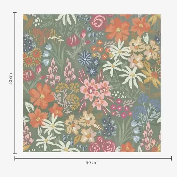 Tapetes Gleznieciskas pļavas ziedi uz salvijas zaļā fona Nr. a00864