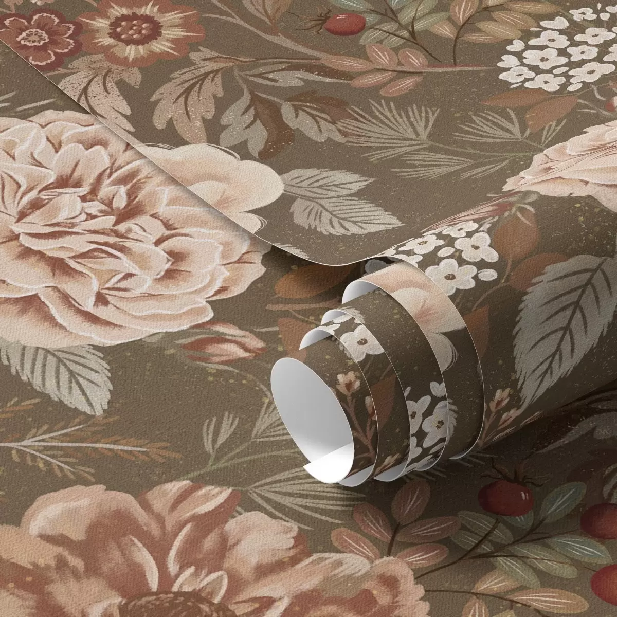 Tapetes Siltas rozes un ogas uz brūna fona Nr. a00868