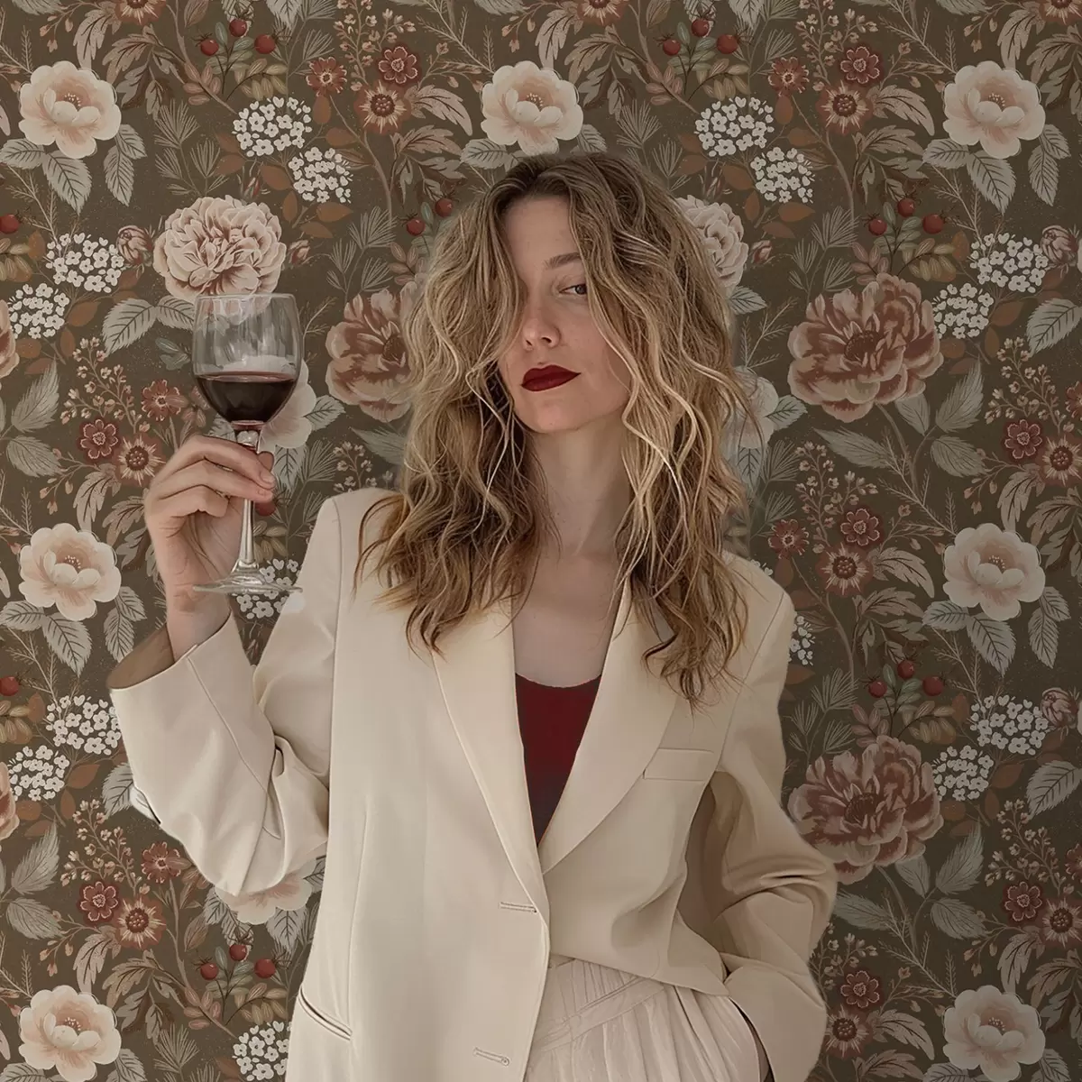 Tapetes Siltas rozes un ogas uz brūna fona Nr. a00868