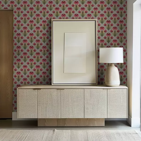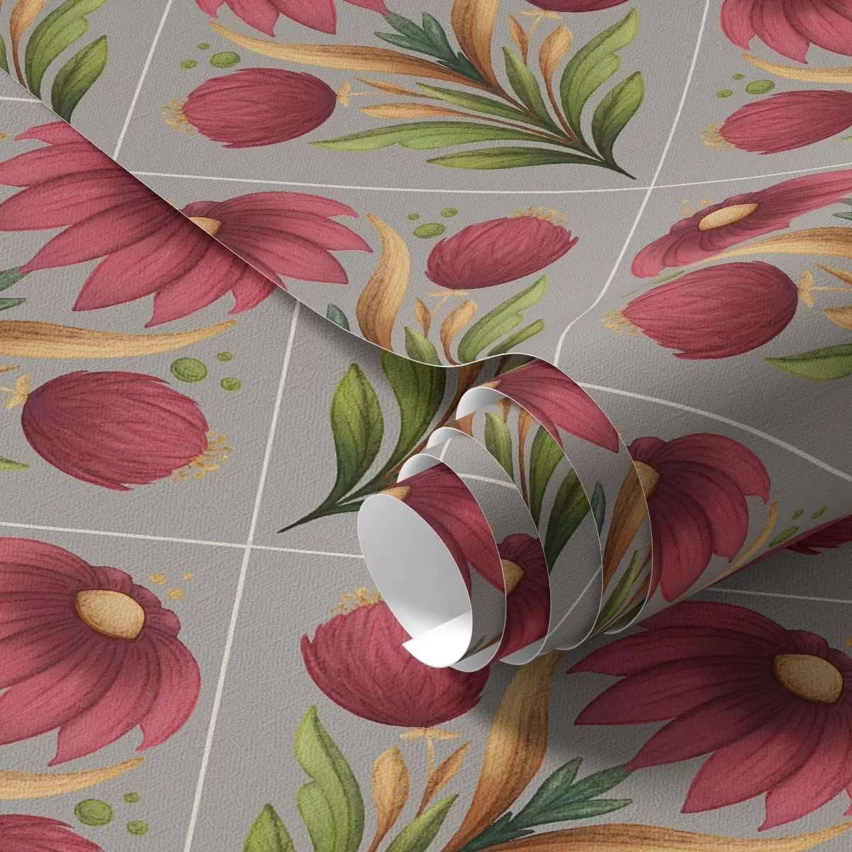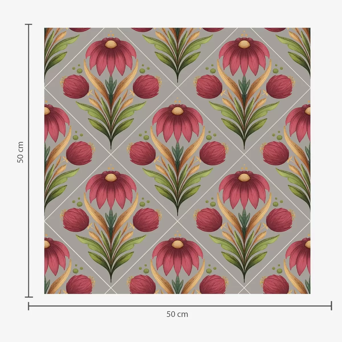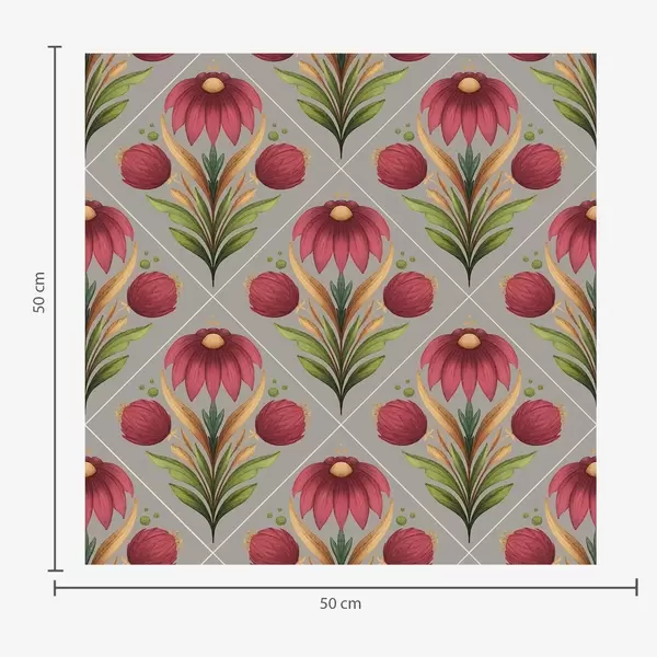 Tapetes Simetriskas ziedu ornamenta uz pelēka fona ar diagonālēm Nr. a00869