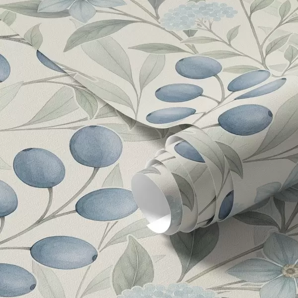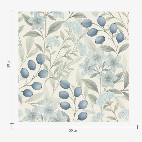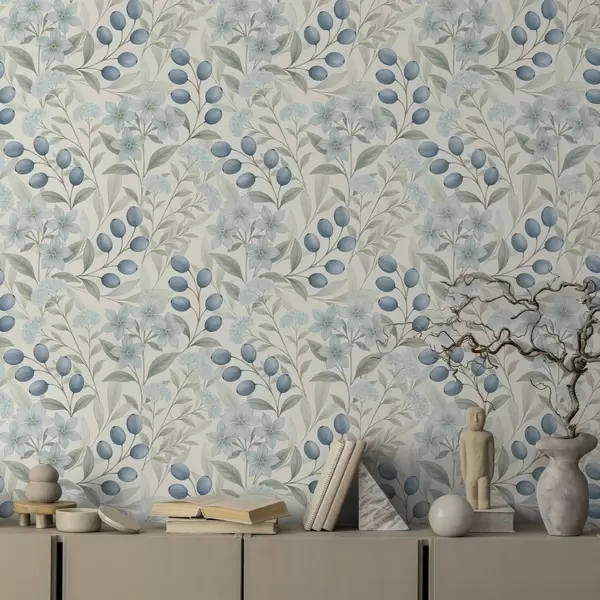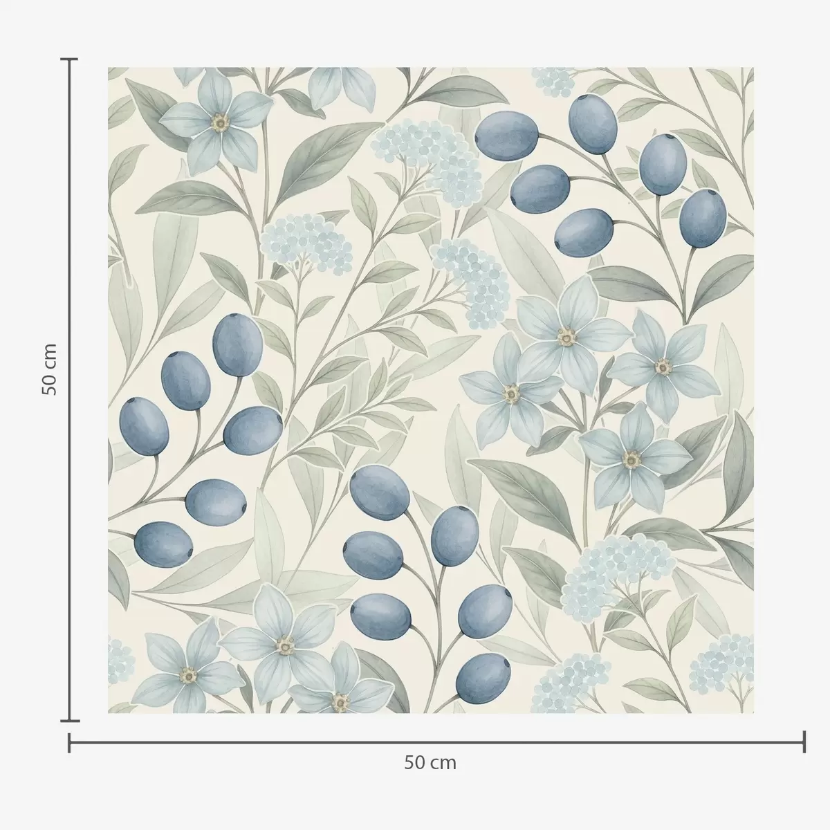 Tapetes Zilas ogas un gaiši ziedi uz ziloņkaula Nr. a00872