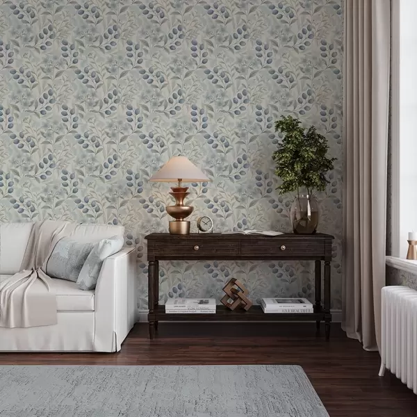 Tapetes Zilas ogas un gaiši ziedi uz ziloņkaula Nr. a00872