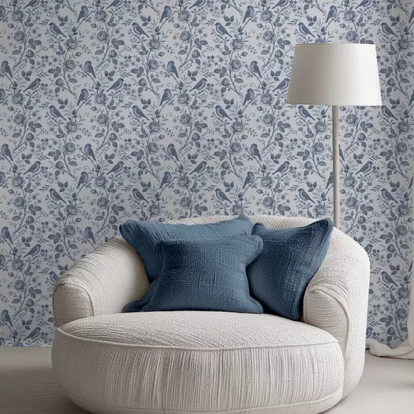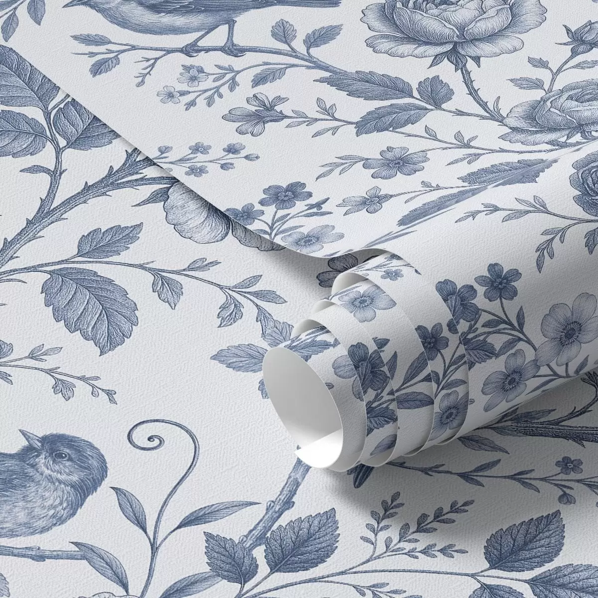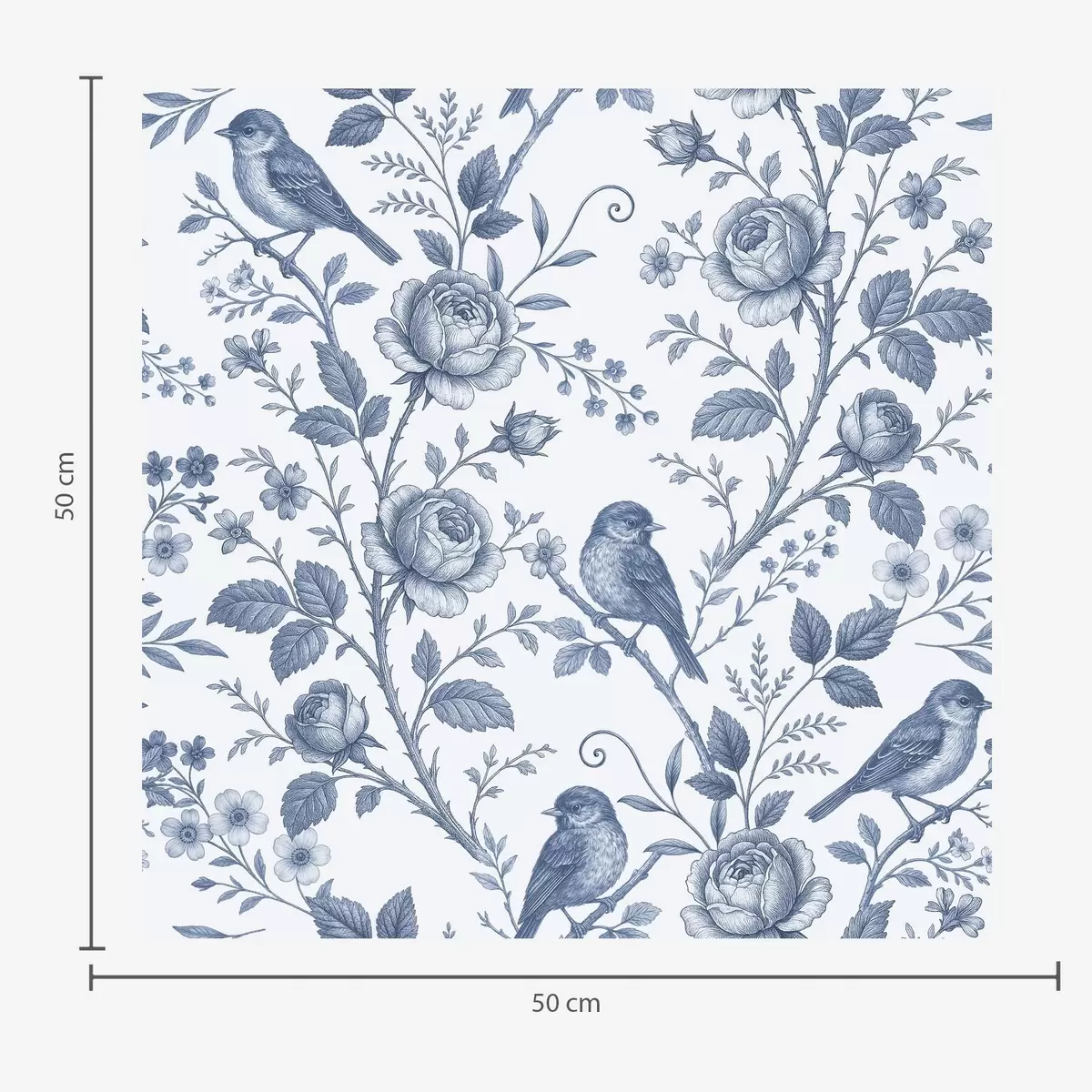 Tapetes Zilas toile putni un rozes uz balta fona Nr. a00873