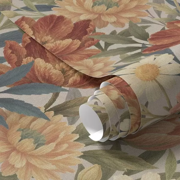 Tapetes Vintage dārzs zied siltā terakotas un persiku krāsā Nr. a00874