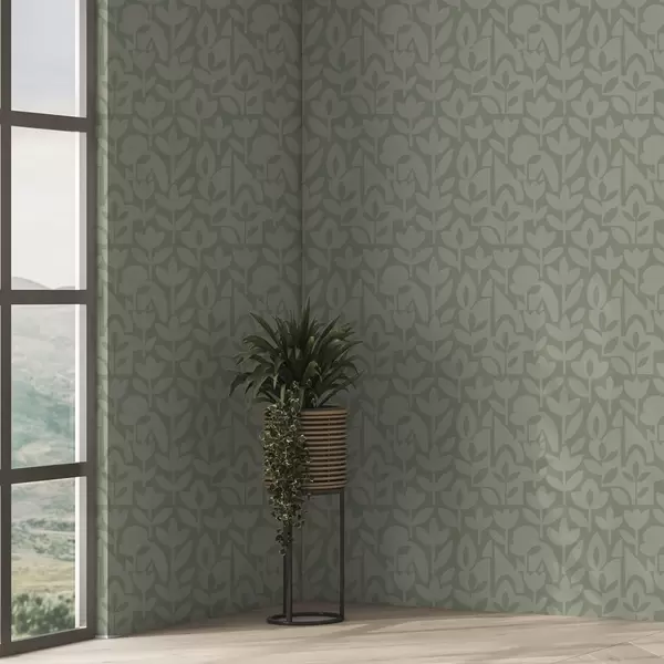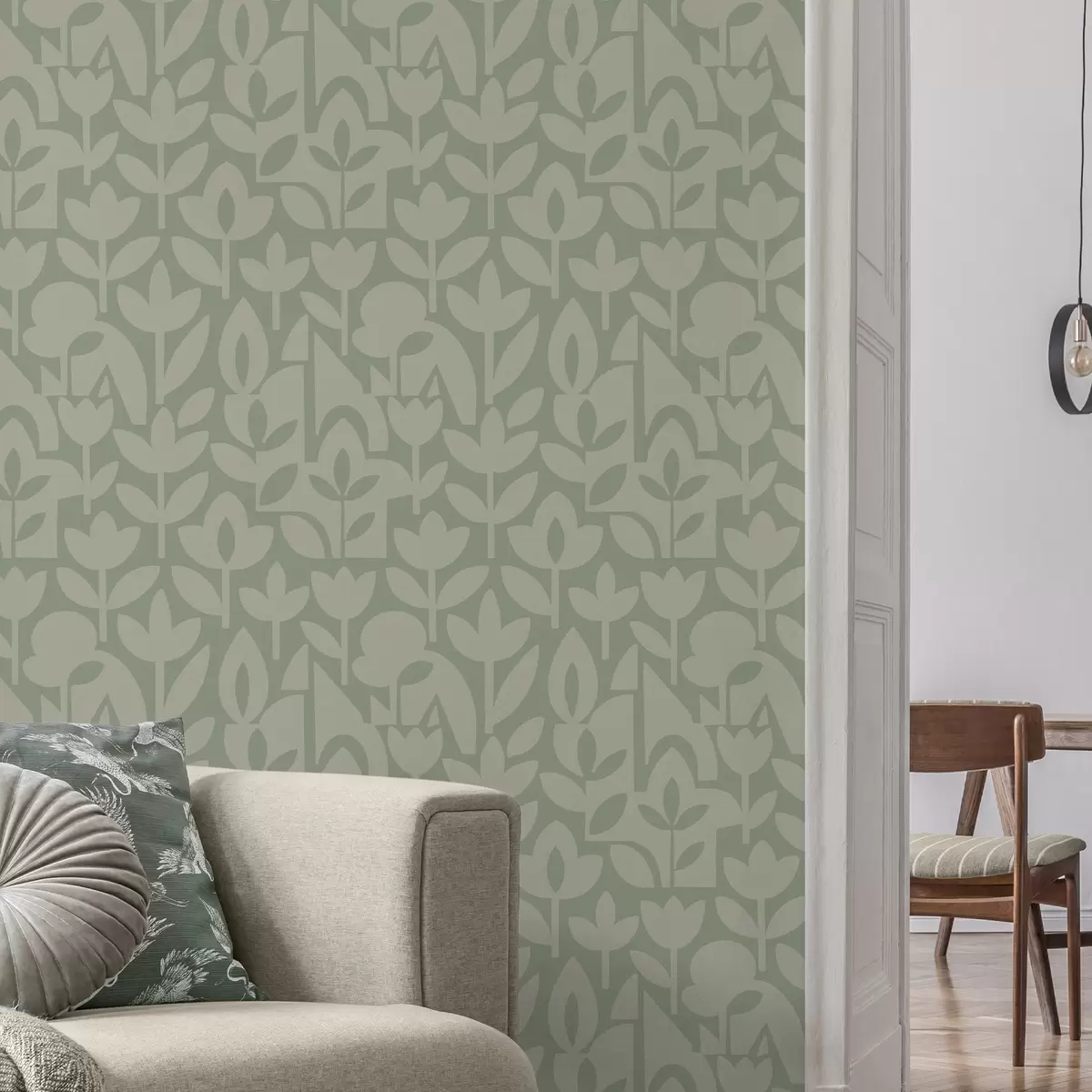 Tapetes Ģeometriskas ziedu siluetas maigā salvijas krāsā Nr. a00875v1