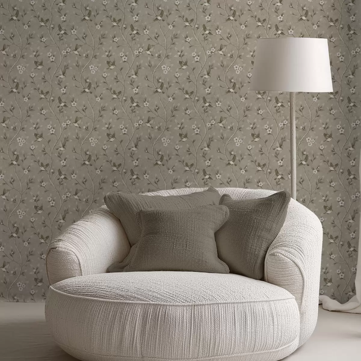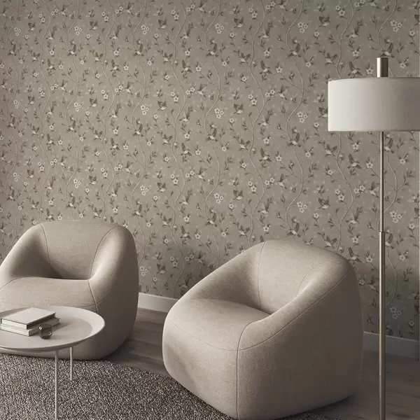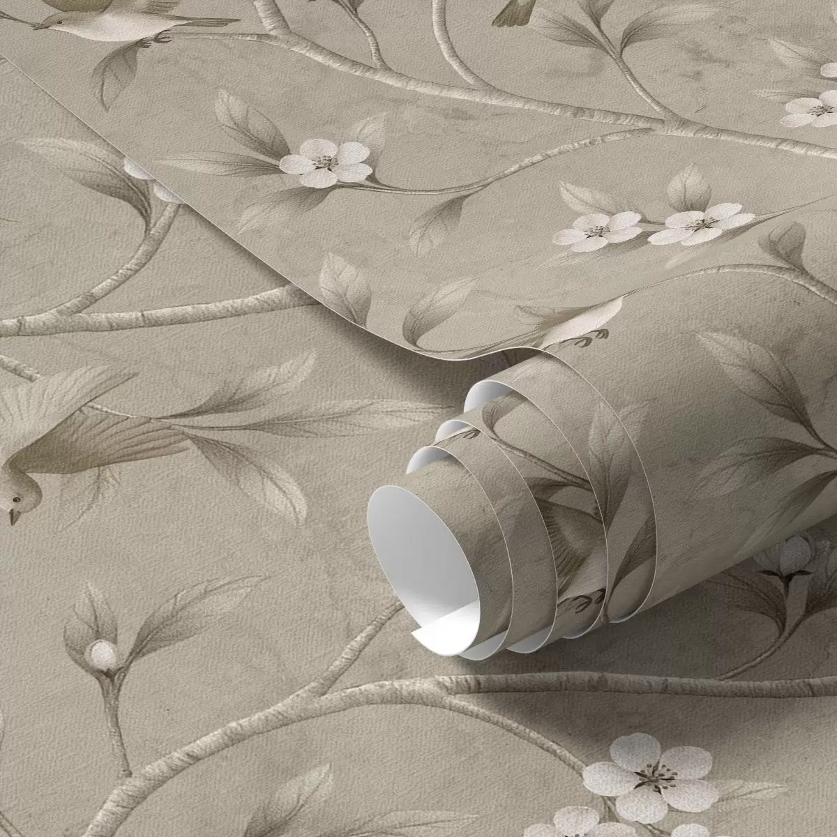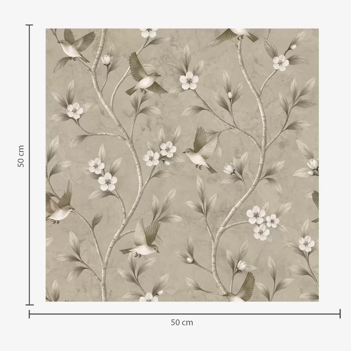 Tapetes Putni un ziedošas zaras siltos sēpijas toņos Nr. a00882