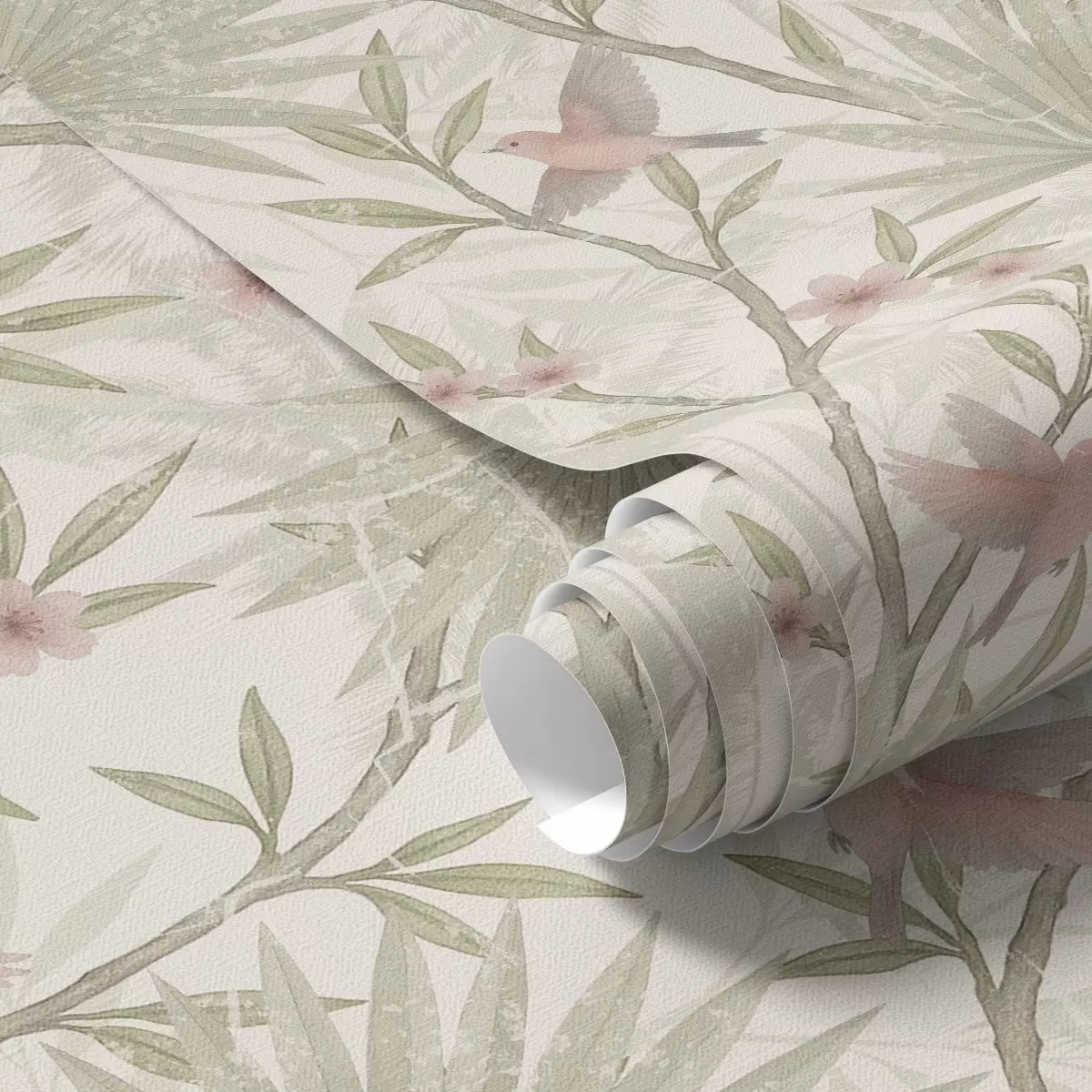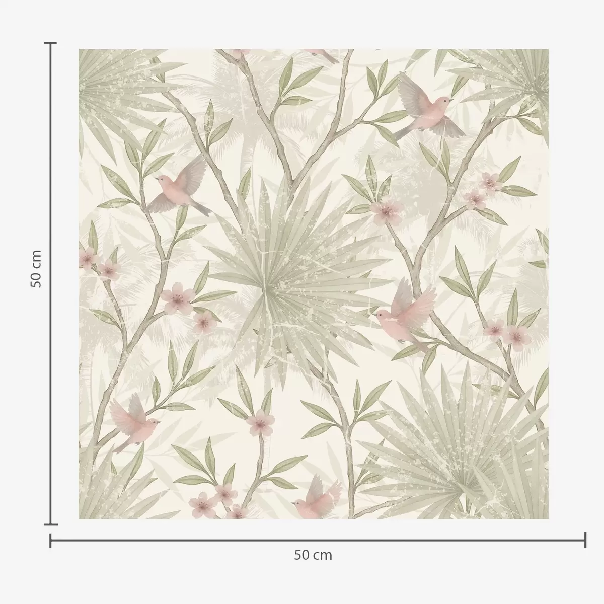 Tapetes Maigi rozā putni palmu lapās Nr. a00883