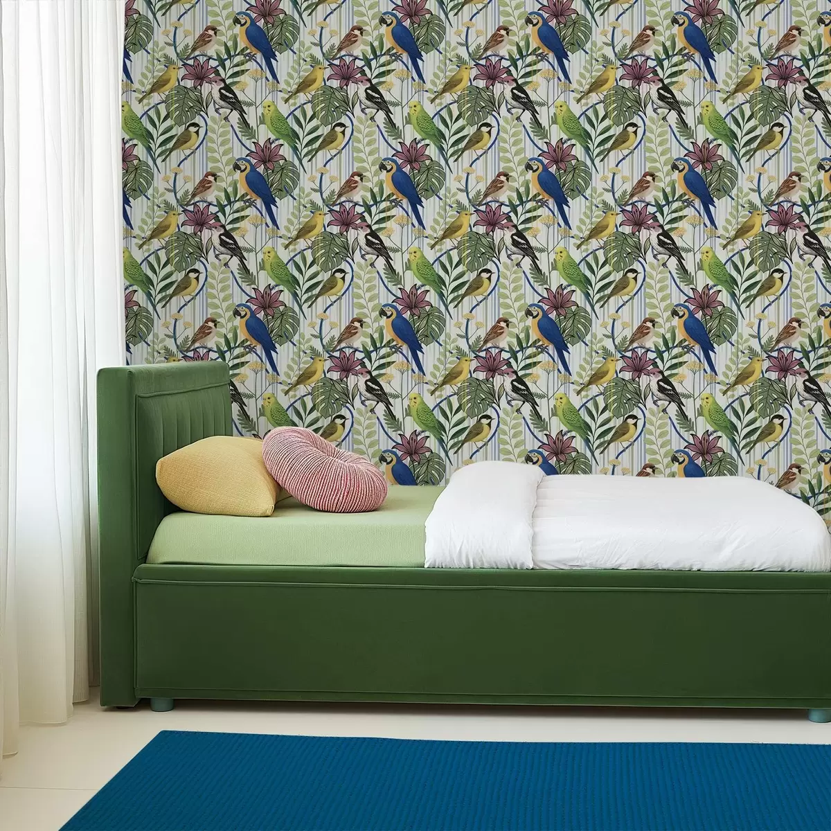 Tapetes Spilgti eksotiskie putni tropu zaļumos Nr. a00887