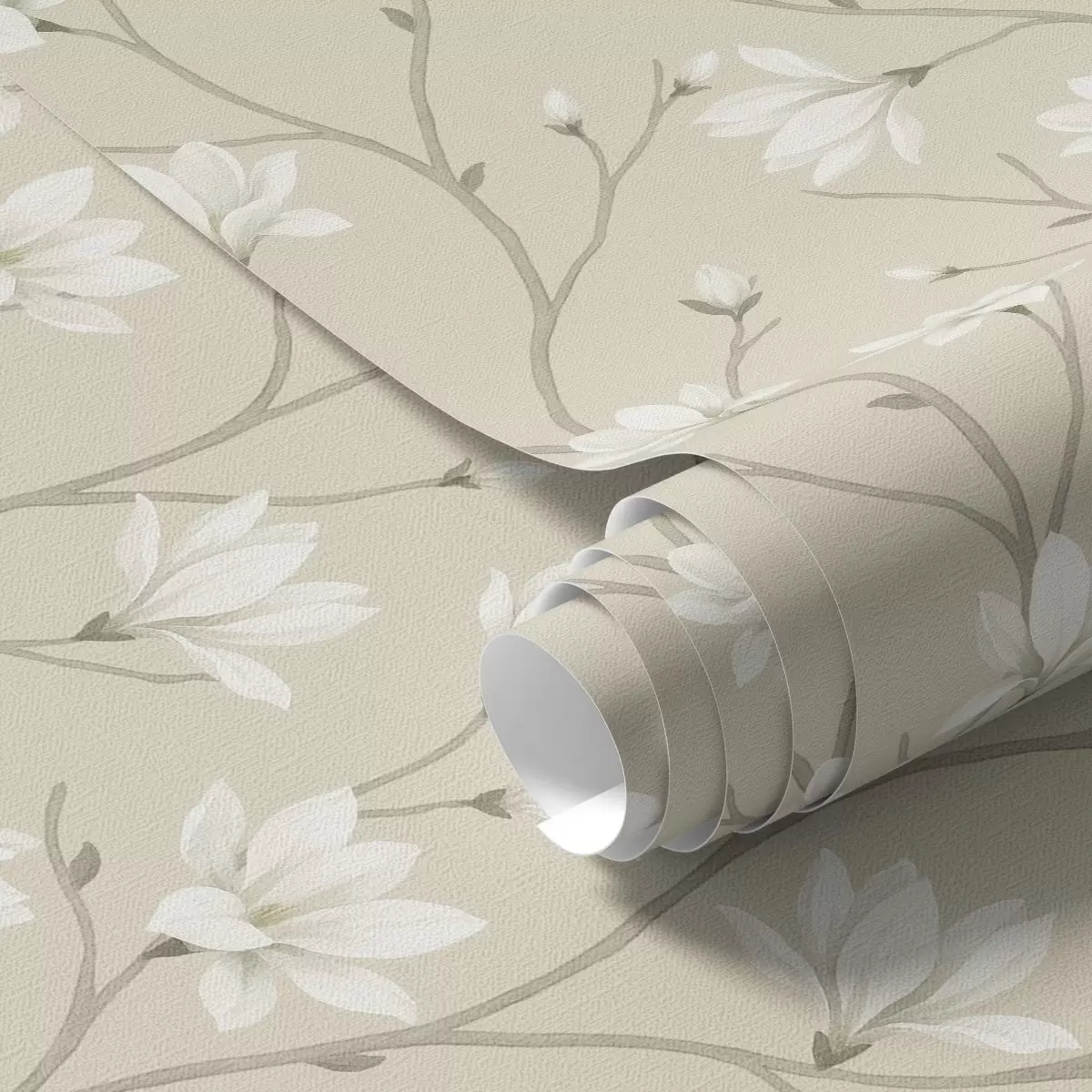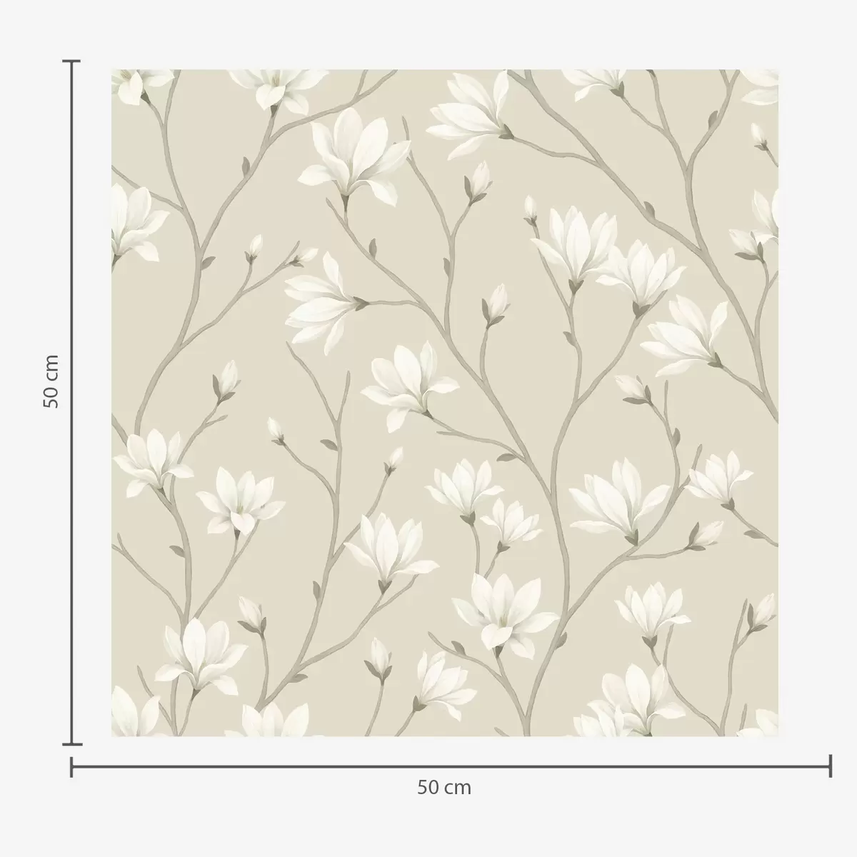 Tapetes Gaišas magnolijas uz slaidām smilškrāsas zarām a00890