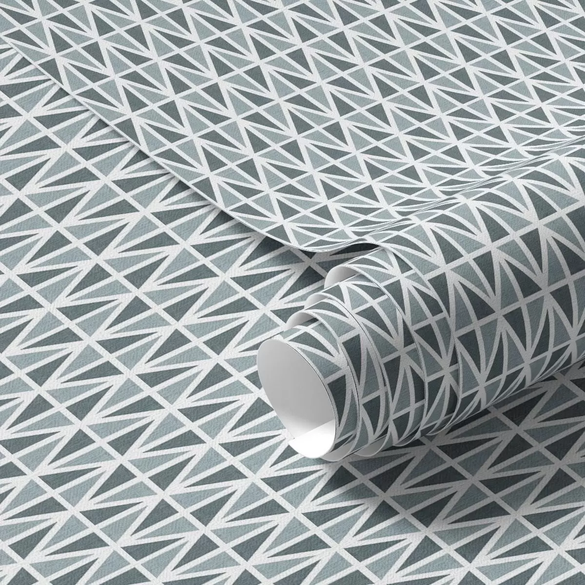 Tapetes Smalks balts dimantu režģis uz klusināta zaļgani zilgana fona Nr. a00903