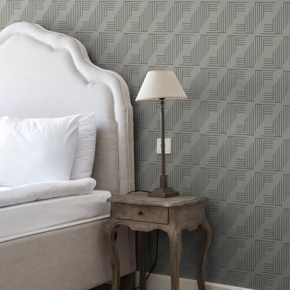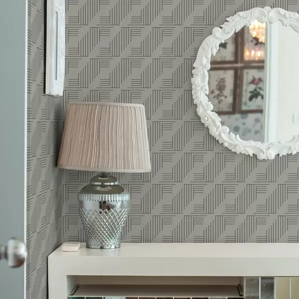 Tapetes Lineāri stūra bloki, kas veido kvadrātu uz siltā pelēkā fona Nr. a00907