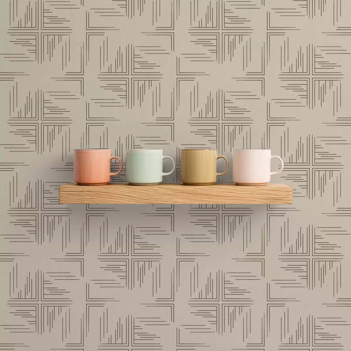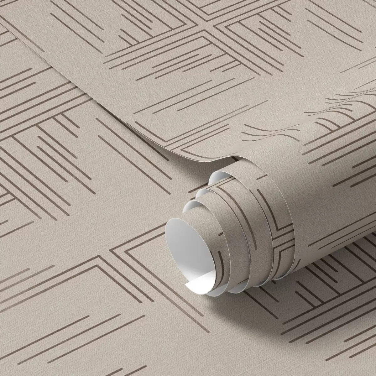 Tapetes Kakao krāsas stūra bloki ar izkliedētiem līniju akcentiem, smilškrāsā Nr. a00912