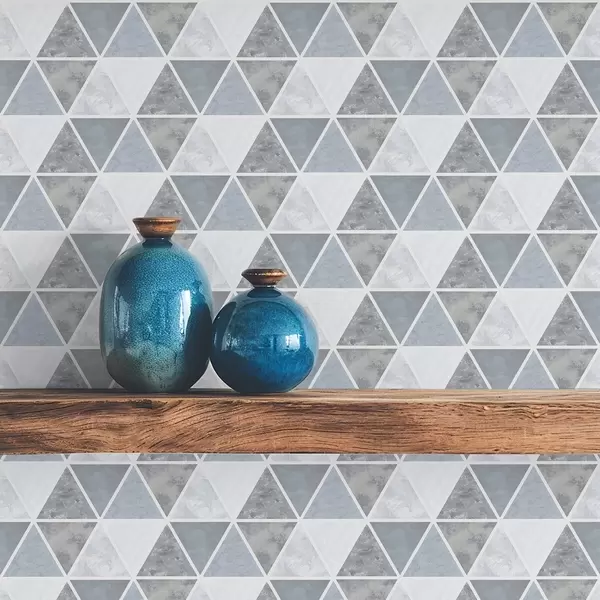 Tapetes Trijstūra ģeometrija vēsās zilo-pelēkās toņos Nr. a00917v1