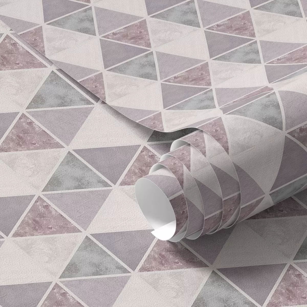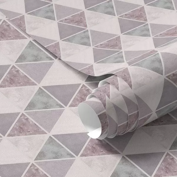 Tapetes Mīksti trīsstūri pelēkā un rozā krāsā un pūderkrāsas toņos Nr. a00918