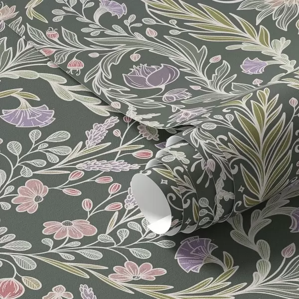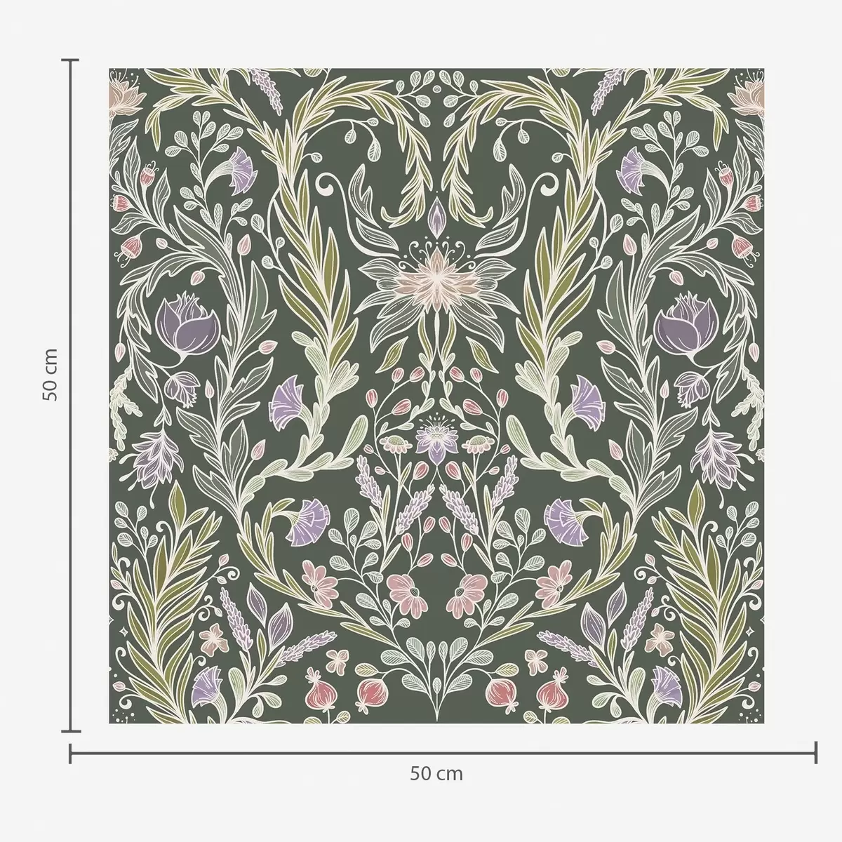 Tapetes Simetriskas ziedu ornamenta uz tumši zaļa fona Nr. a00928