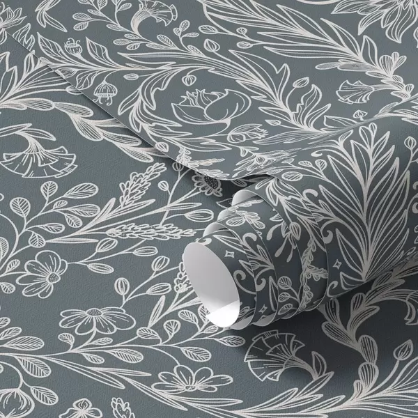 Tapetes Lineārs ziedu ornamenti uz zili pelēka fona Nr. a00929v1