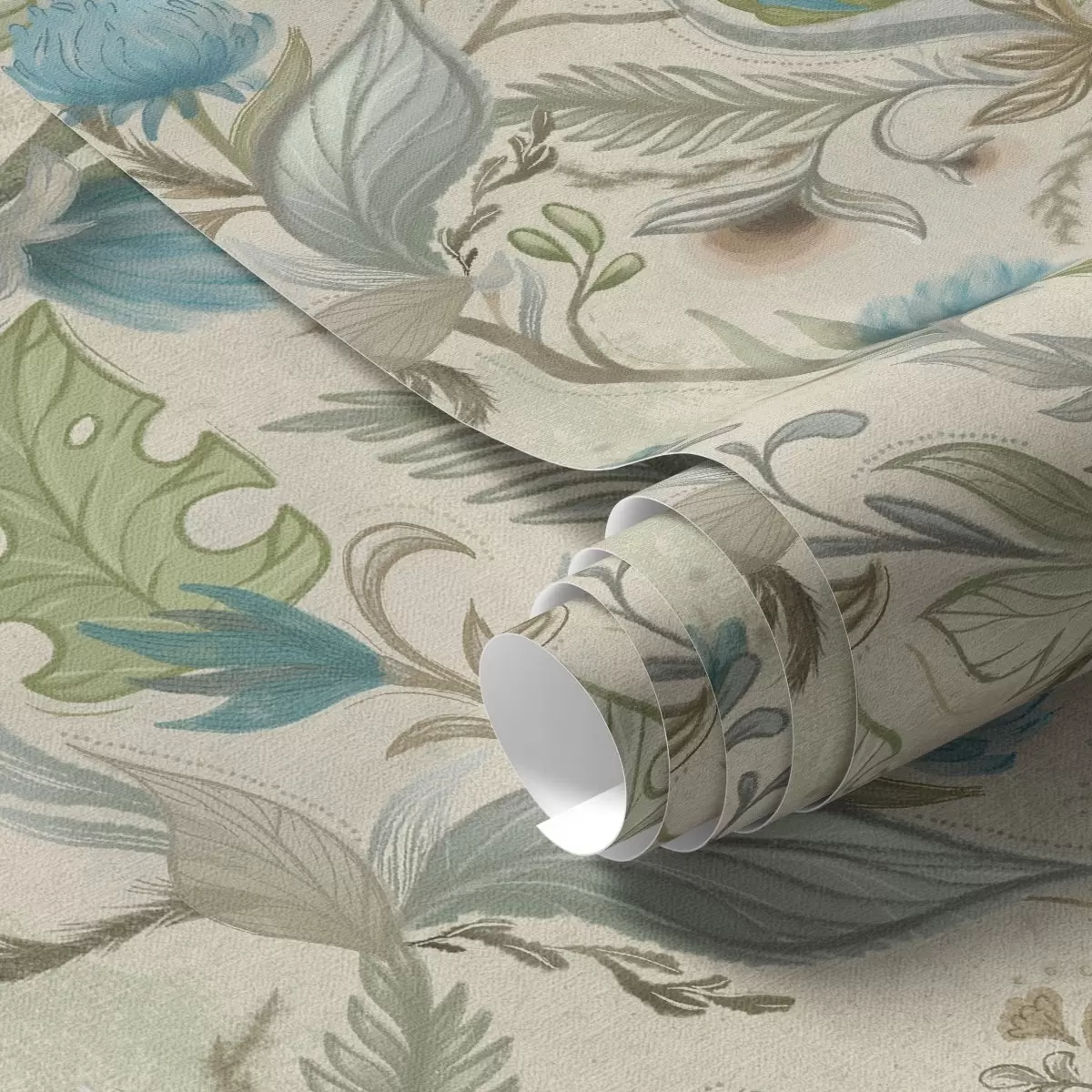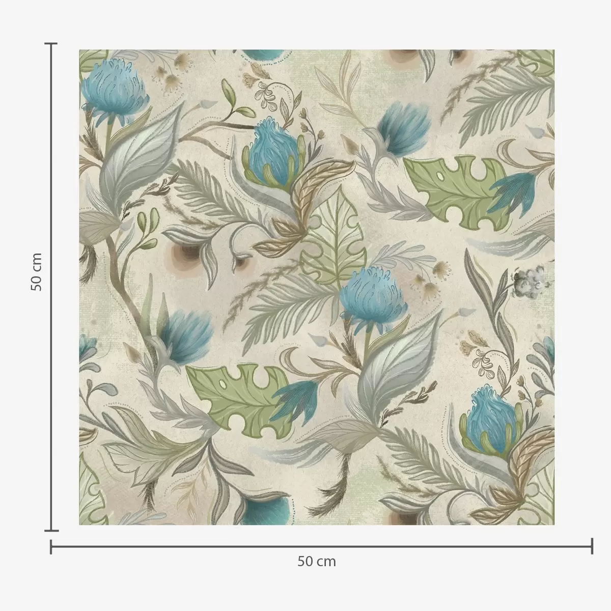 Tapetes Zilas pumpuri un lapas uz gaiši smilškrāsas fona Nr. a00930