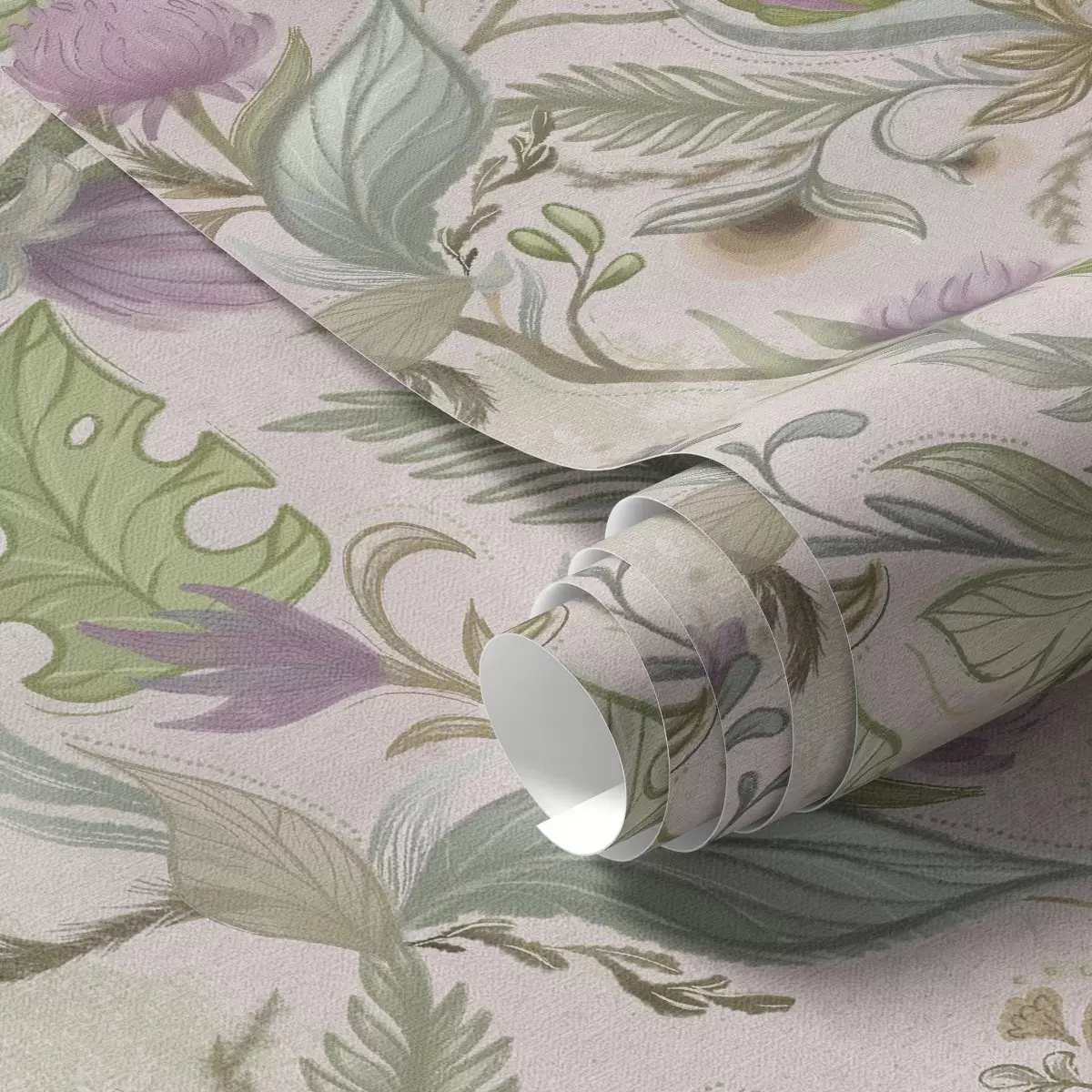Tapetes Sīkākas savvaļas puķes un lapas uz pūderveida fona Nr. a00930v3