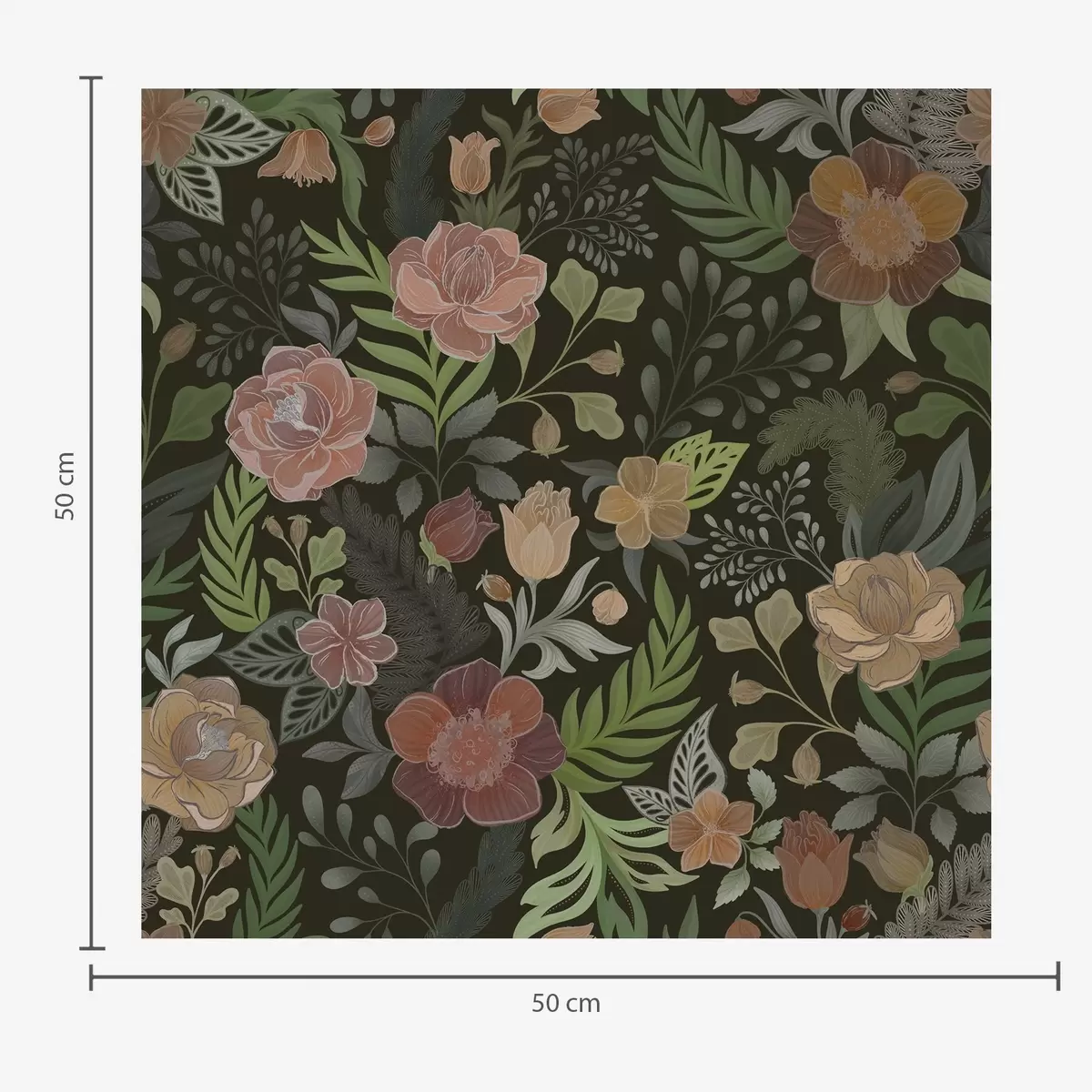 Tapetes Bagātīgas puķes un zaļumi uz tumša fona Nr. a00932