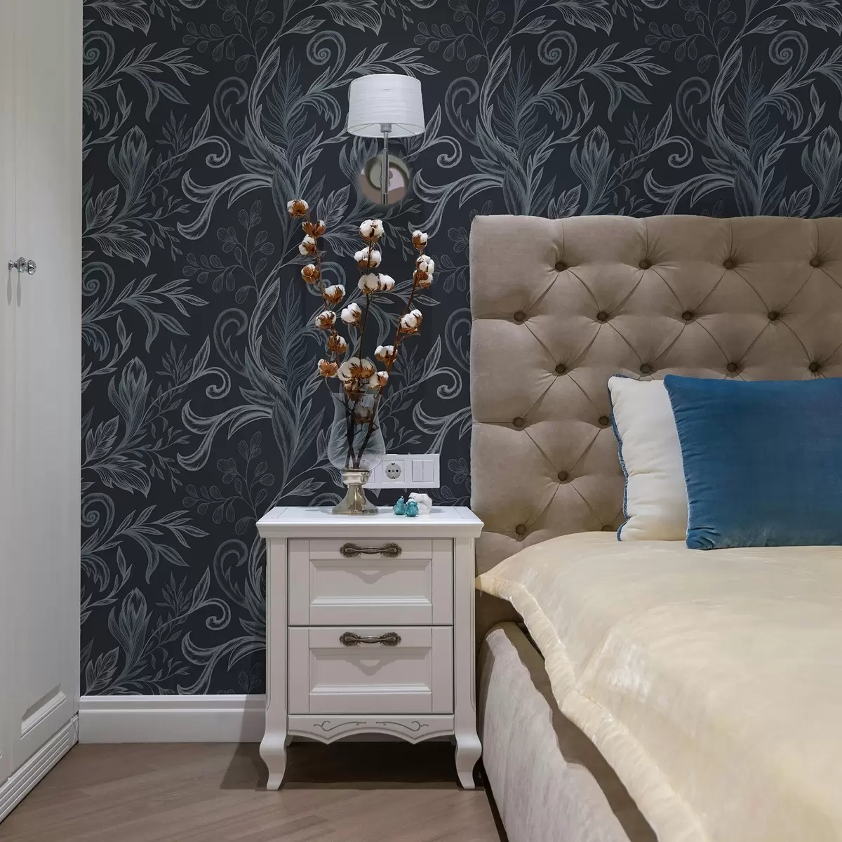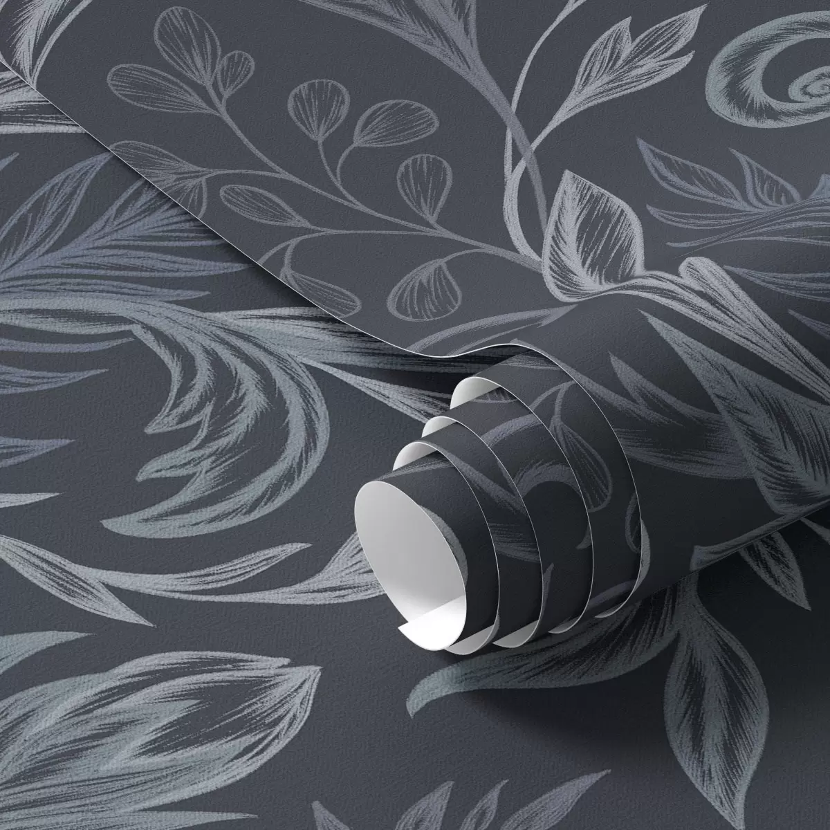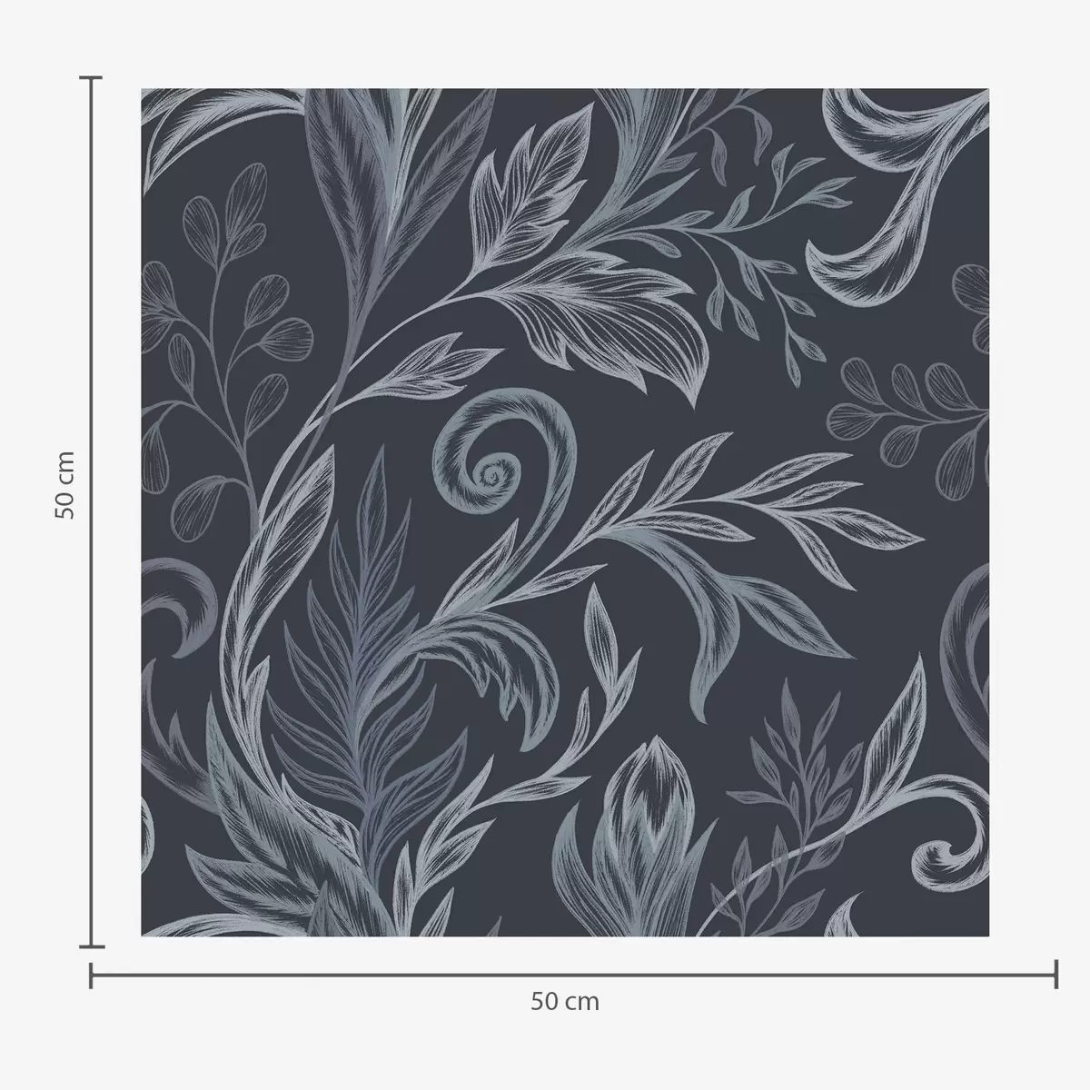 Tapetes Tumši indigo krāsas izliektas lapas ar roku zīmētu ēnojumu Nr. a00935