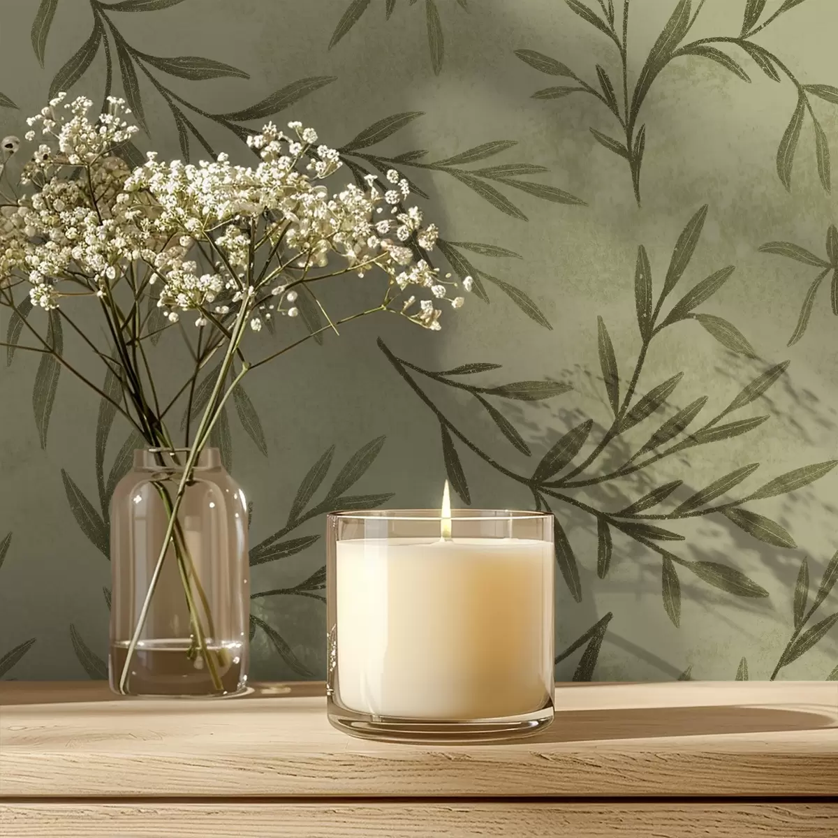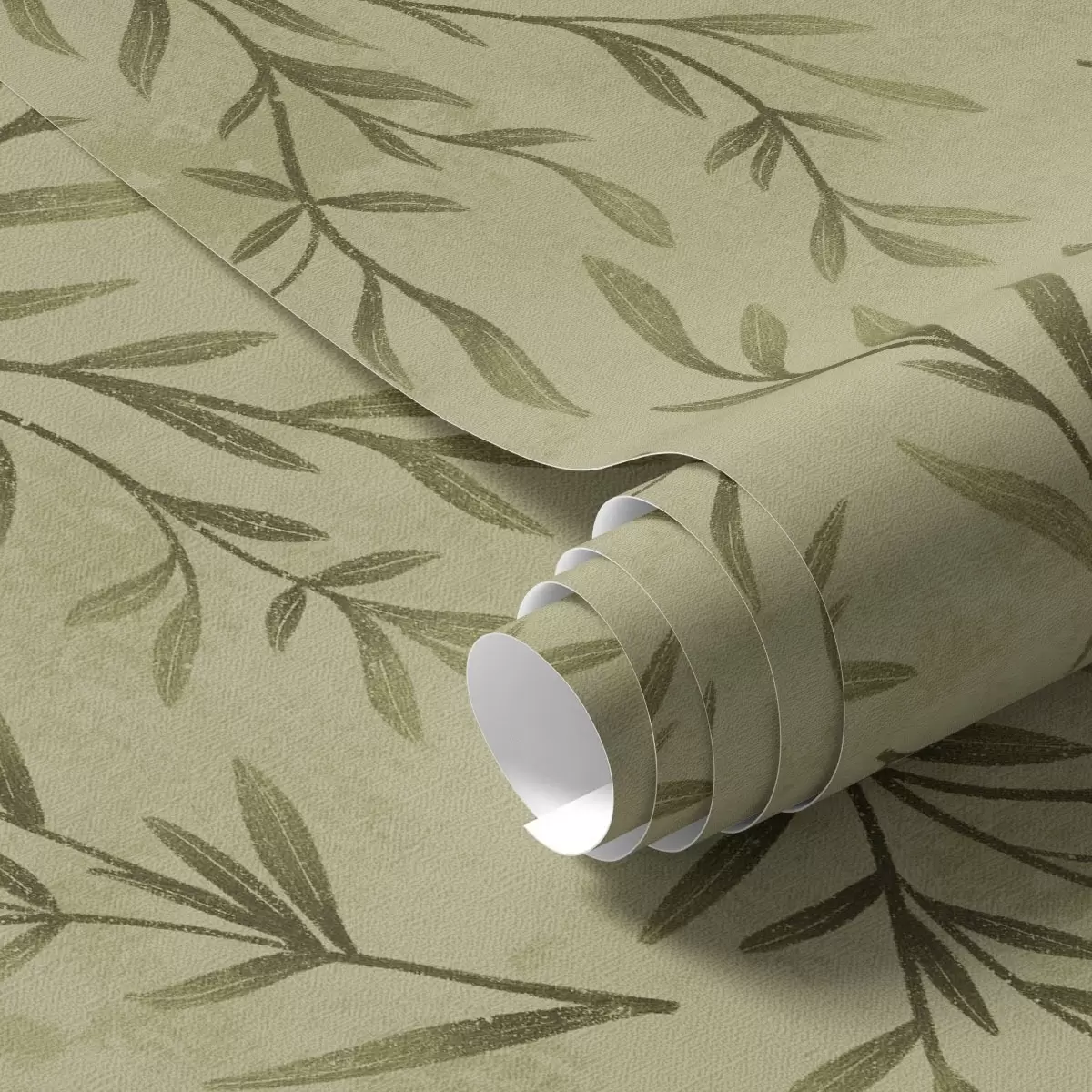 Tapetes Olīvu zariņi uz klusināti dzeltenzaļā teksturētā fona Nr. a00936