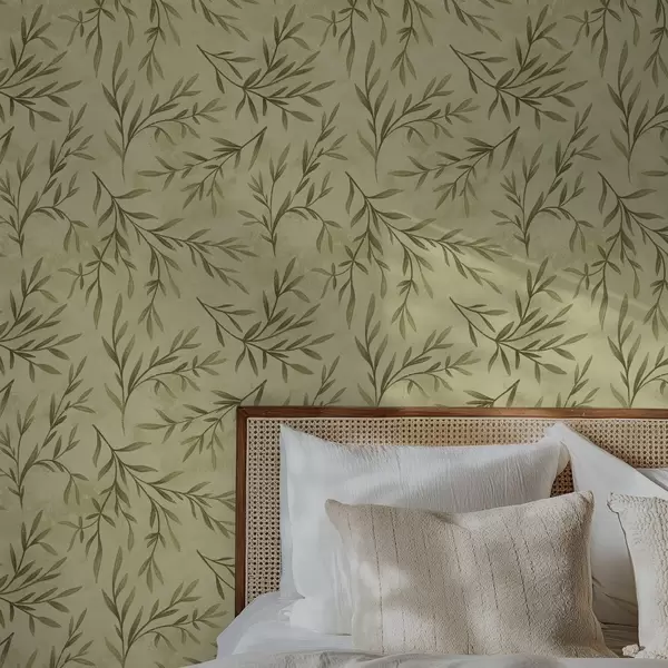 Tapetes Olīvu zariņi uz klusināti dzeltenzaļā teksturētā fona Nr. a00936
