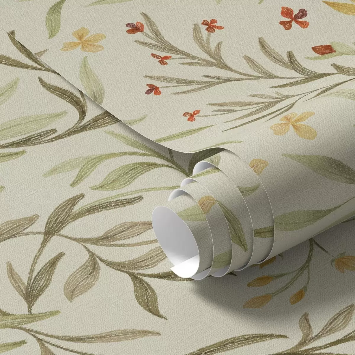 Tapetes Dzeltenas un sarkanas puķes uz gaiši zaļgana fona Nr. a00937