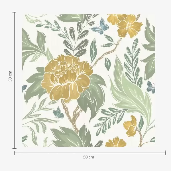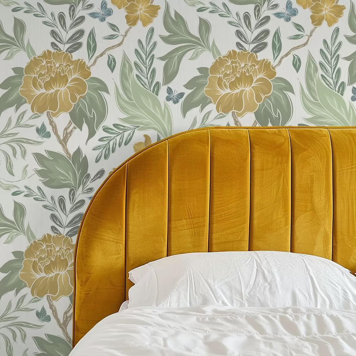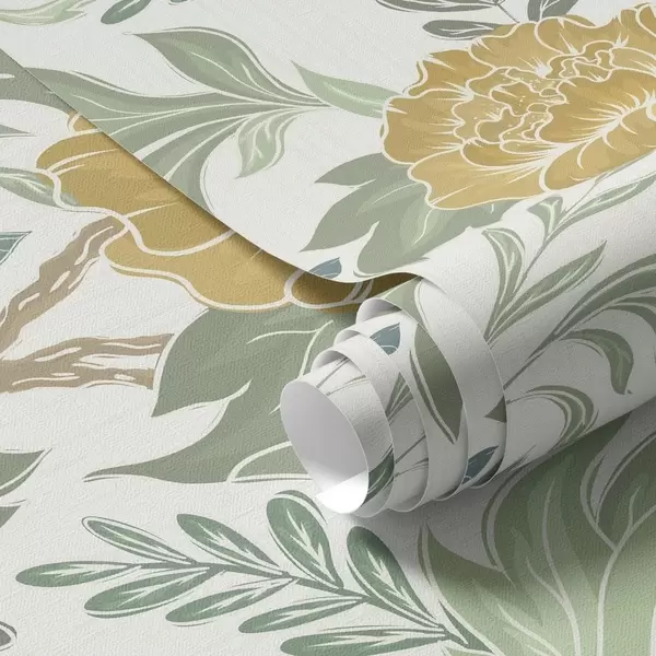 Tapetes Lielas dzeltenas peonijas un zaļumi uz gaiša fona Nr. a00941