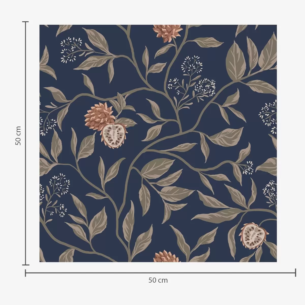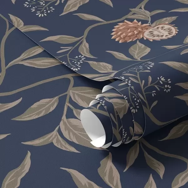 Tapetes Zils dārzs ar zariem, augļiem un sīkiem ziediem Nr. a00959