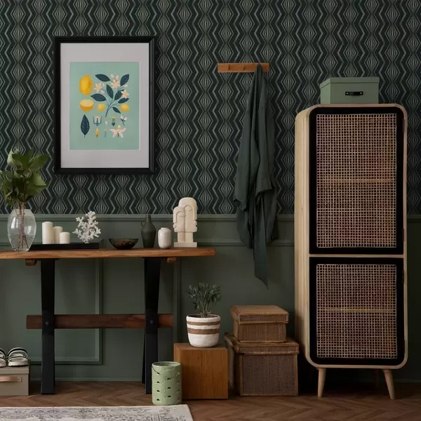 Tapetes Tumši zaļgani zils dimantu ģeometriskais raksts Nr. a00973v1