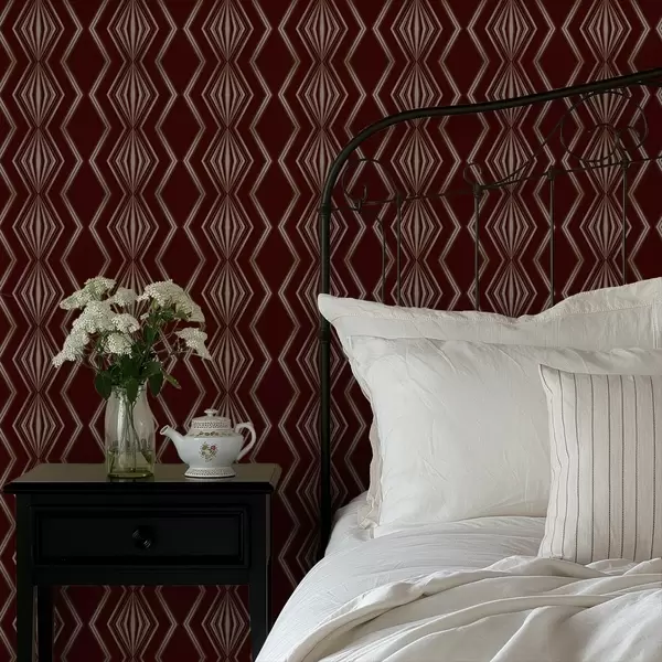 Tapetes Burgundijas fons ar ritmiskiem rombiem un zigzaga līnijām Nr. a00974