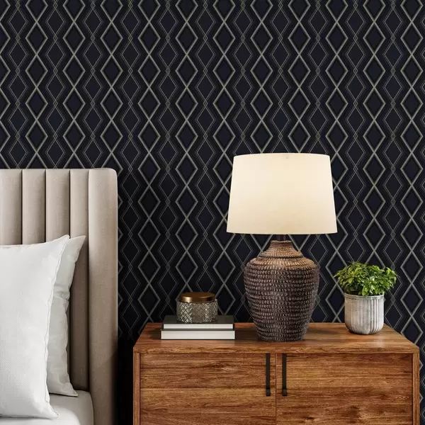 Tapetes Tumši zils dimantu režģis ar plānām gaišām līnijām Nr. a00975
