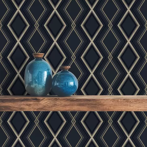 Tapetes Tumši zils dimantu režģis ar plānām gaišām līnijām Nr. a00975