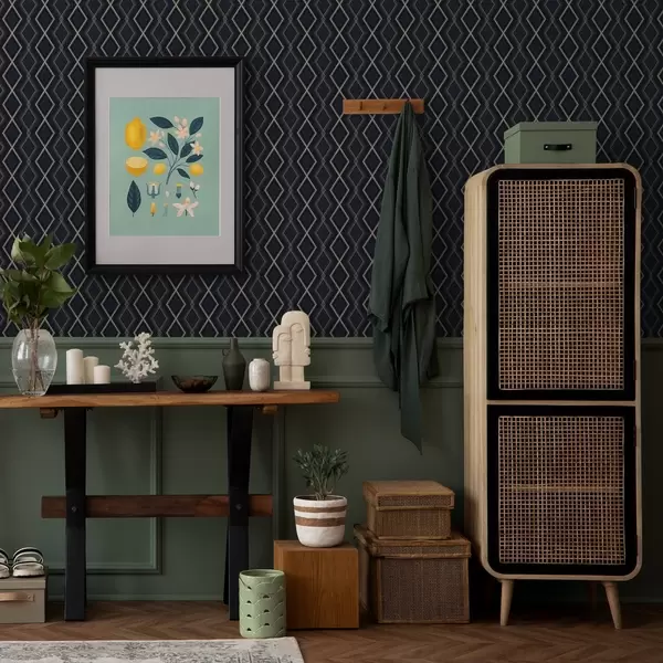 Tapetes Tumši zils dimantu režģis ar plānām gaišām līnijām Nr. a00975