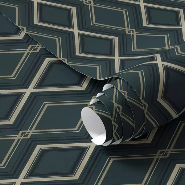 Tapetes Tumši zaļgani zils fons ar atkārtotu rombu režģi Nr. a00975v1