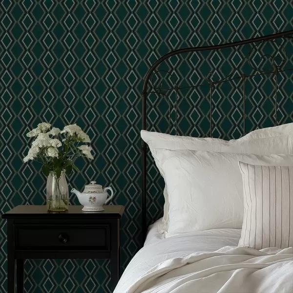 Tapetes Tumši zaļgani zilgani fons ar vertikālām dimantu rindām Nr. a00976