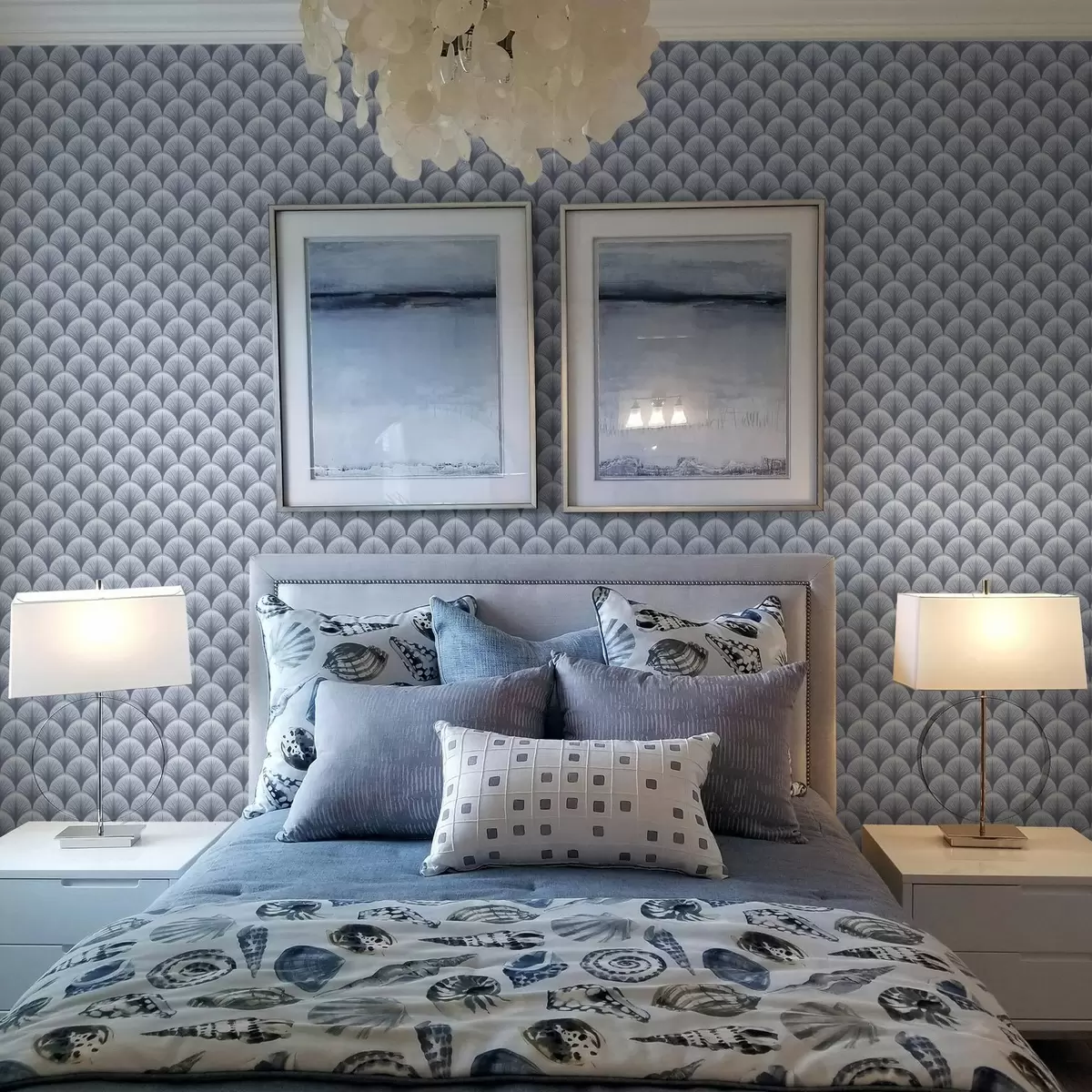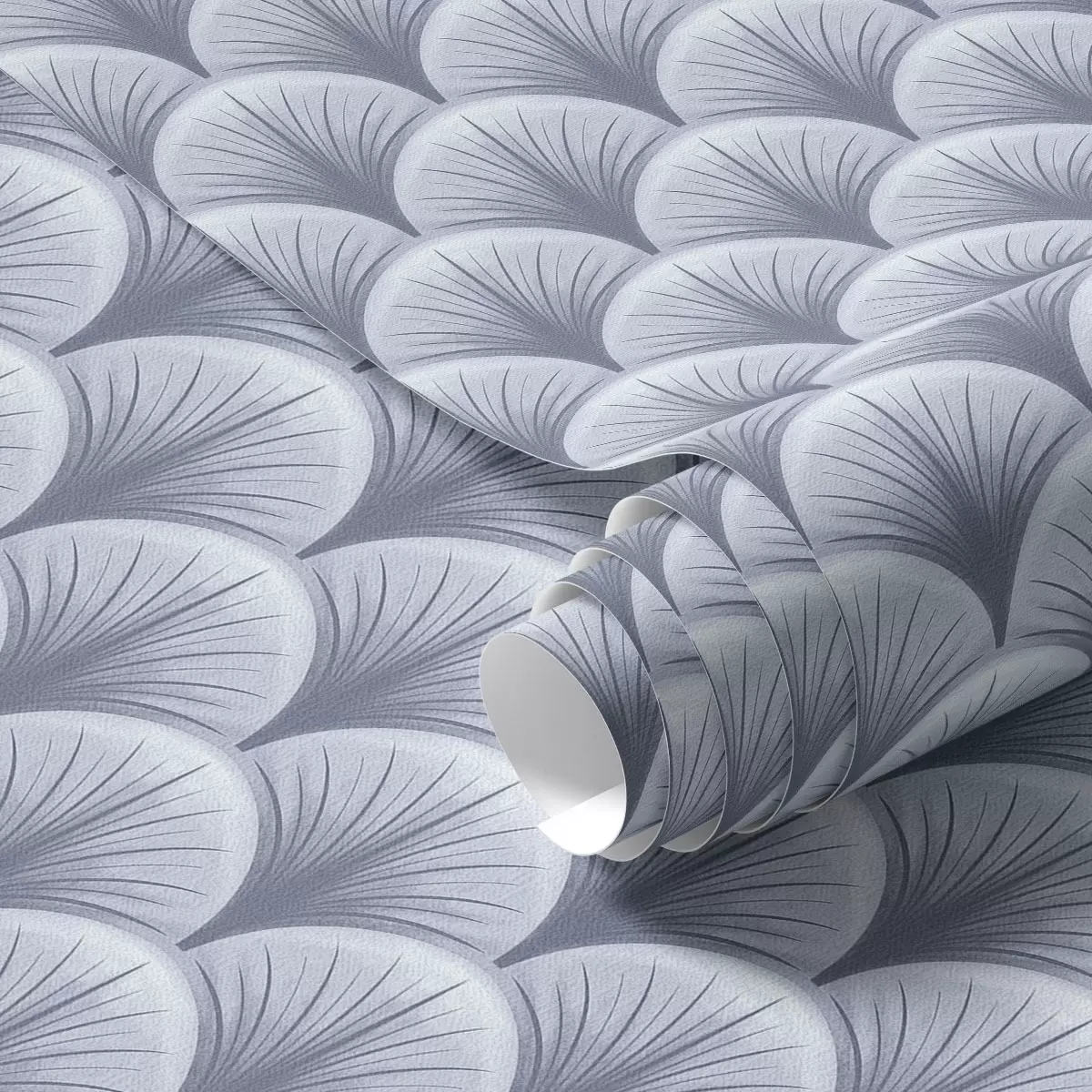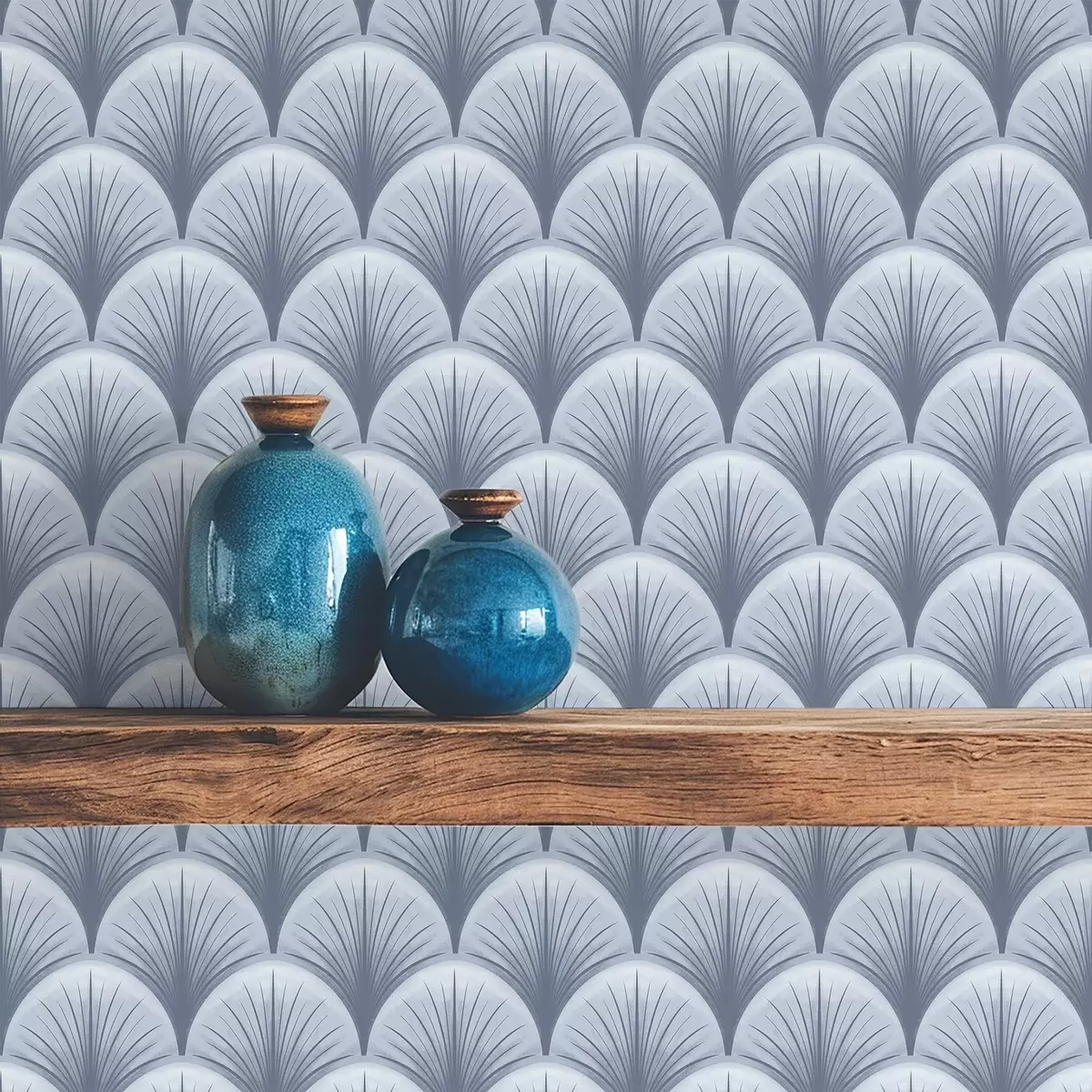 Tapetes Zilas vēdekļveida arkas ar stariem uz gaiši zila fona Nr. a00978v1