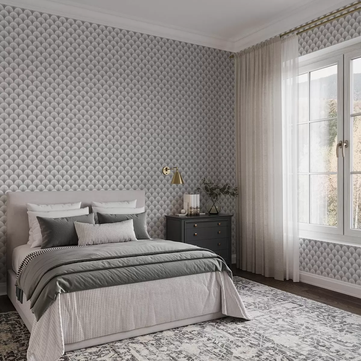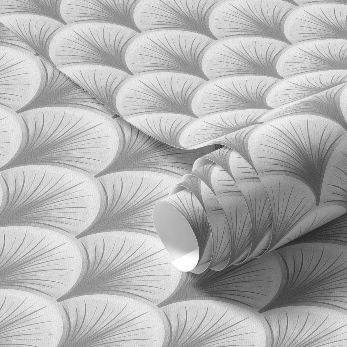 Tapetes Kontrastējoši pelēki ventilatoru arkas uz balta fona Nr. a00978v4