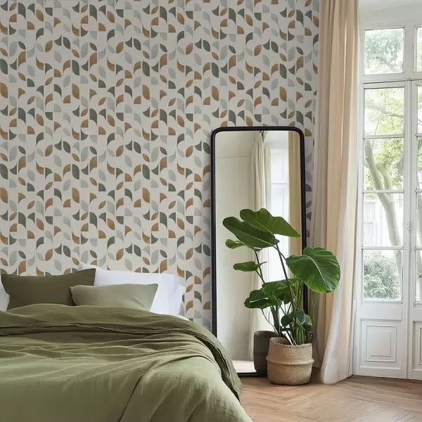 Tapetes Abstrakti pusapļi un lapas zaļā un terakotas krāsā Nr. a00985