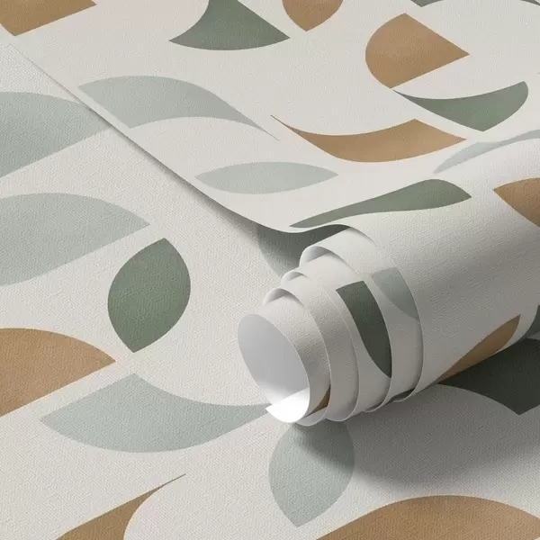 Tapetes Abstrakti pusapļi un lapas zaļā un terakotas krāsā Nr. a00985