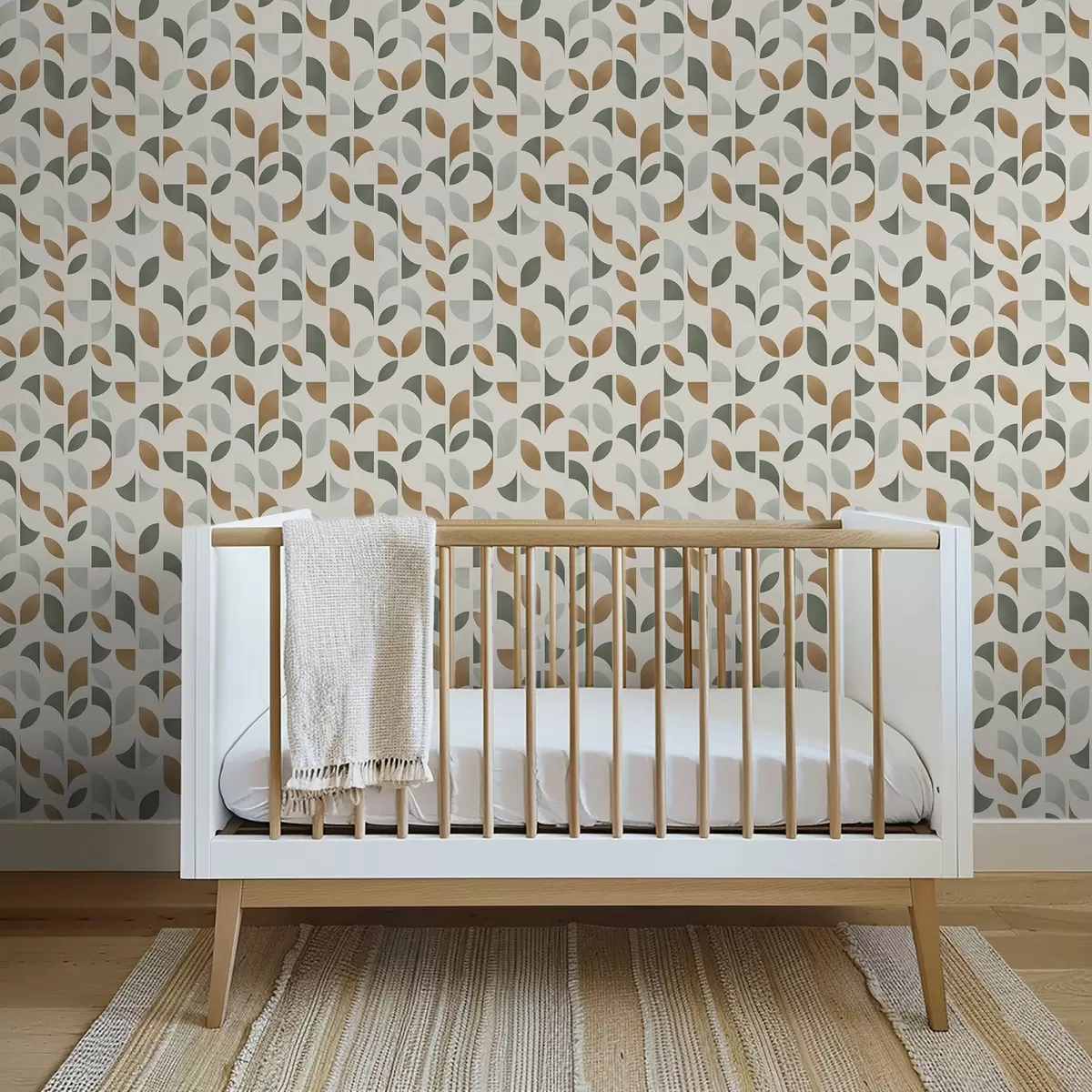 Tapetes Vertikālas pussapļu un lapu kolonnas, zaļā terakota Nr. a00986
