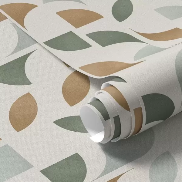 Tapetes Vertikālas pussapļu un lapu kolonnas, zaļā terakota a00986