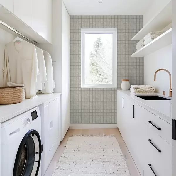 Tapetes Kvadrātveida flīžu imitācija maigā pelēkzaļā krāsu gamā Nr. a00988