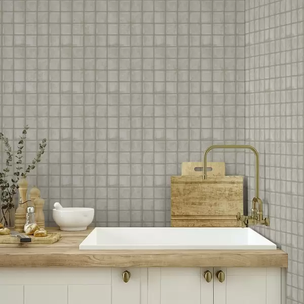 Tapetes Kvadrātveida flīžu imitācija maigā pelēkzaļā krāsu gamā Nr. a00988