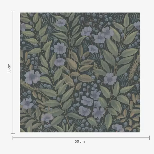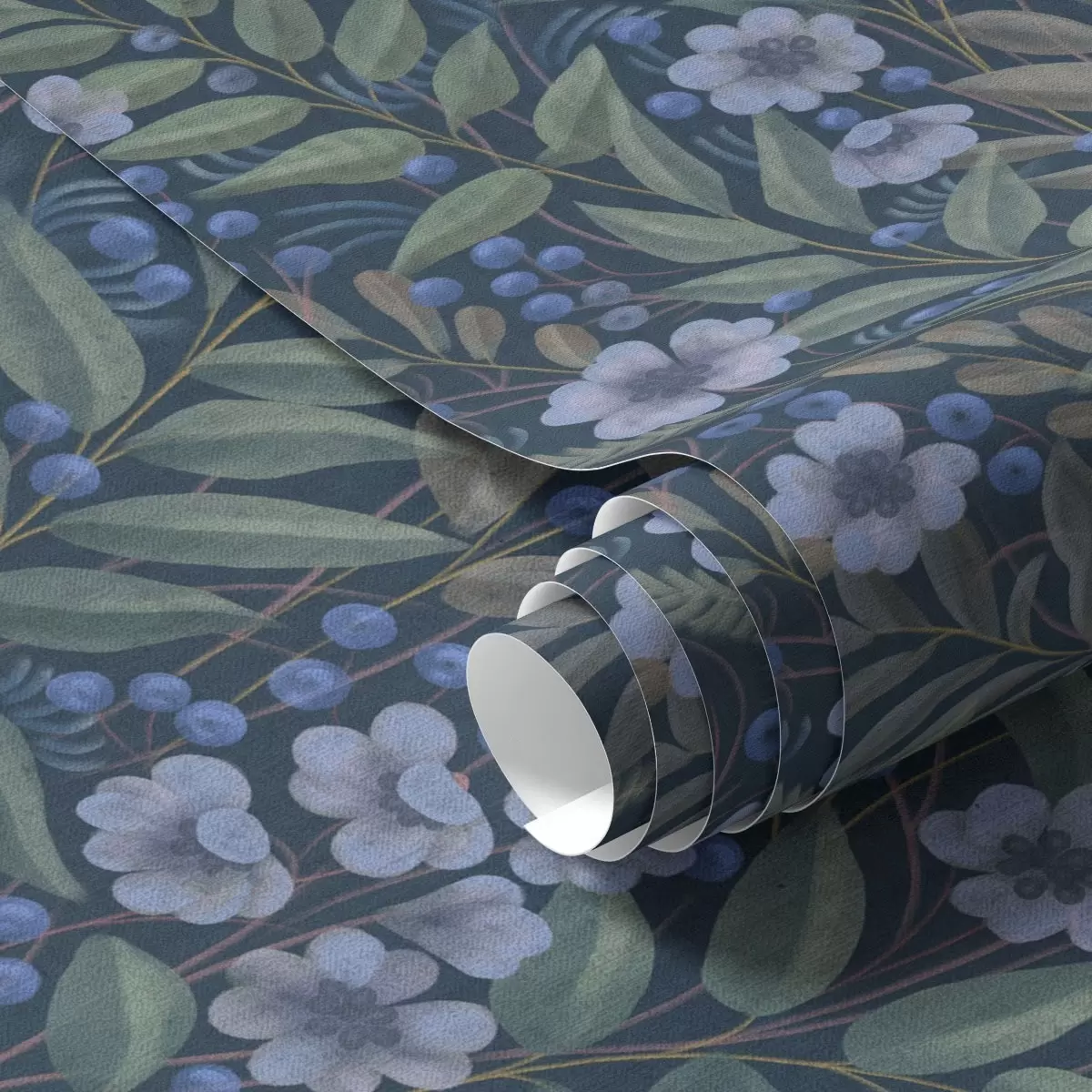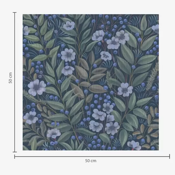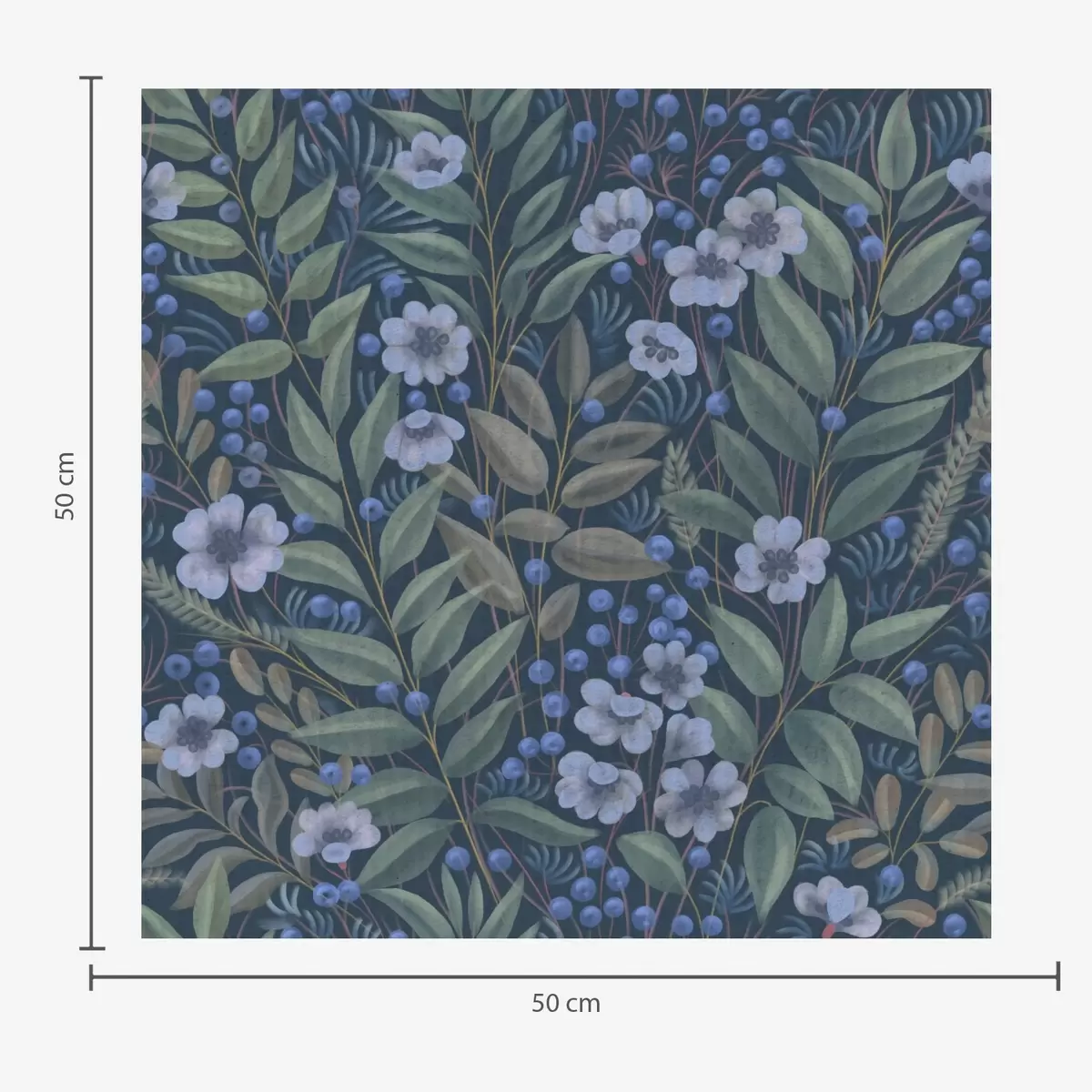 Tapetes Tumši zilas ogas un baltas ziedi blīvā lapotnē Nr. a00994