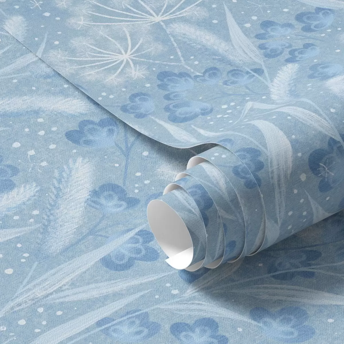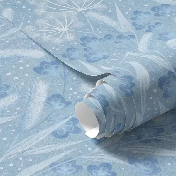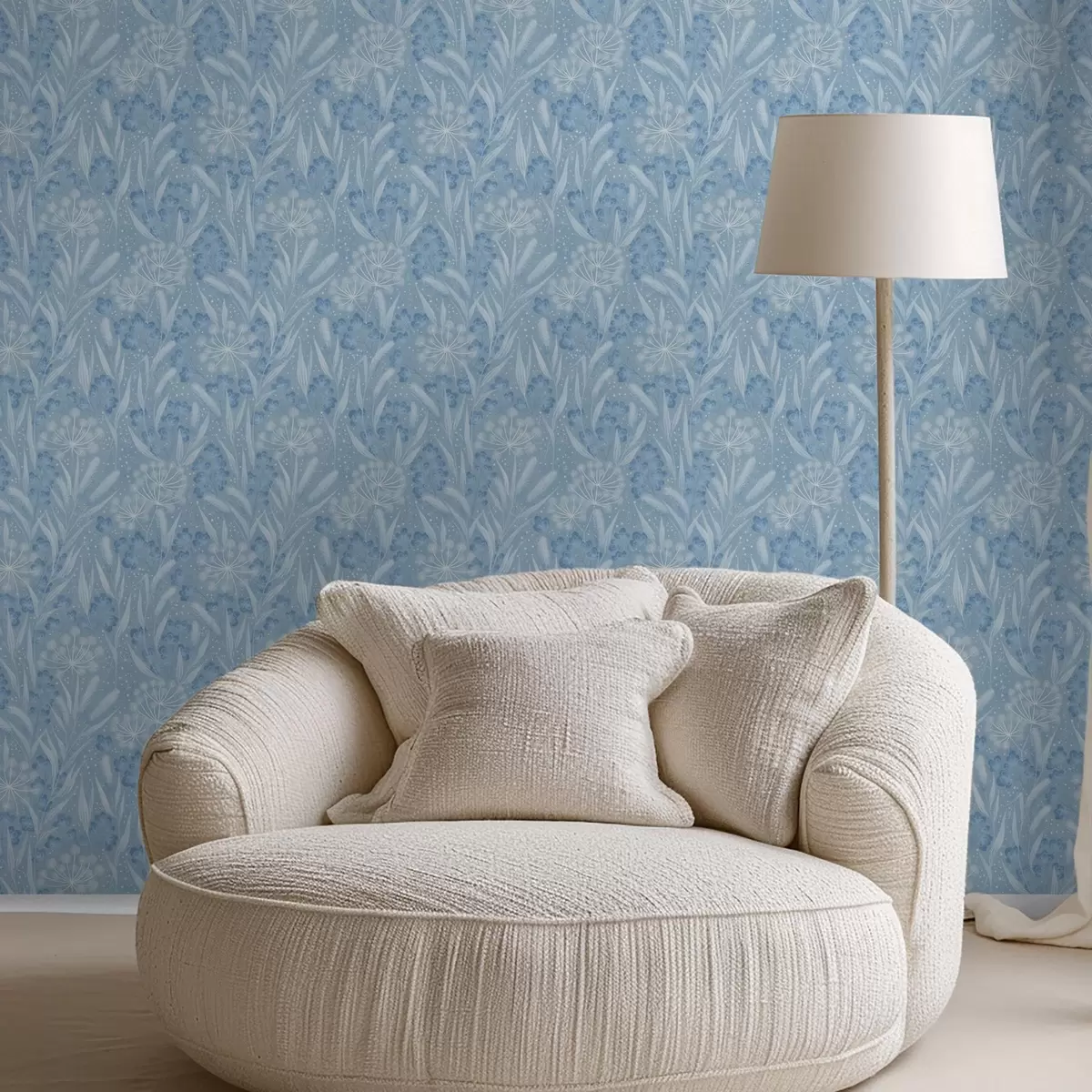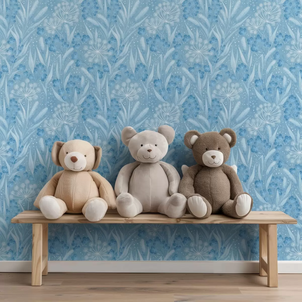 Tapetes Sals zils pļavas ar pienenes sēklas un sīki ziedi Nr. a00995