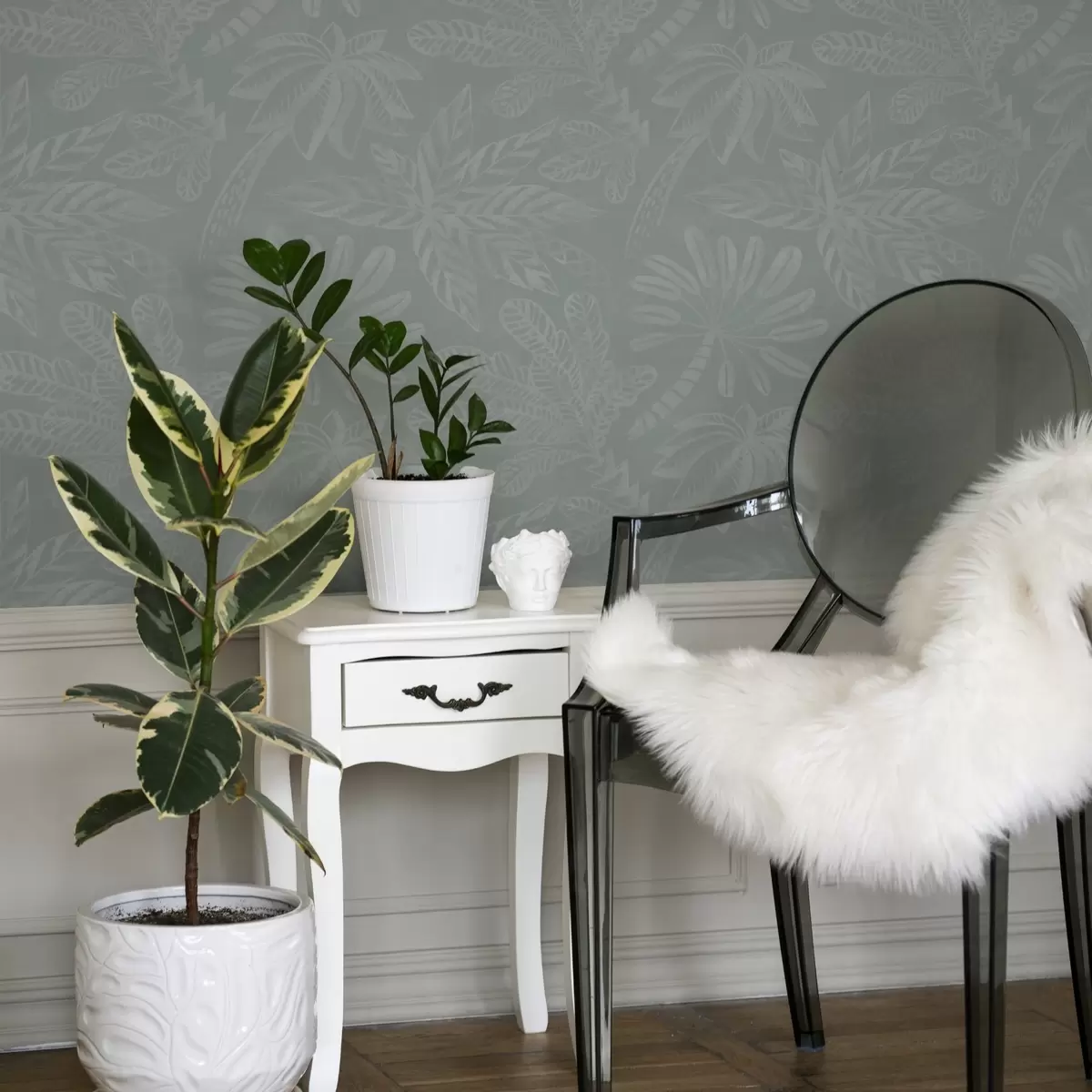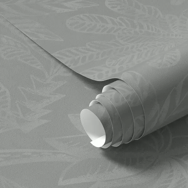 Tapetes Matētas lielas tropu lapas mīkstā pelēkā krāsu gamā Nr. a01001