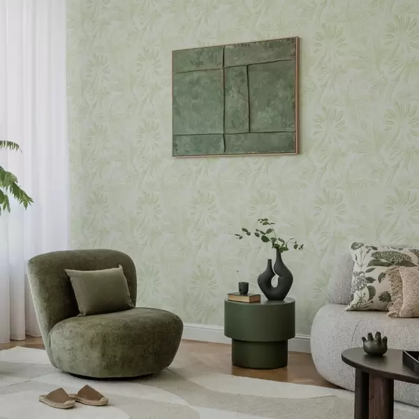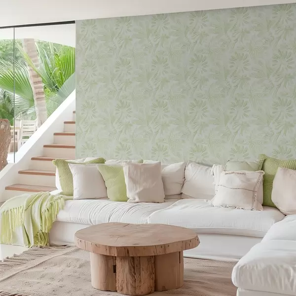Tapetes Sketched tropu lapas svaigā gaiši zaļā tonī Nr. a01001v1