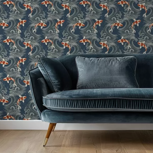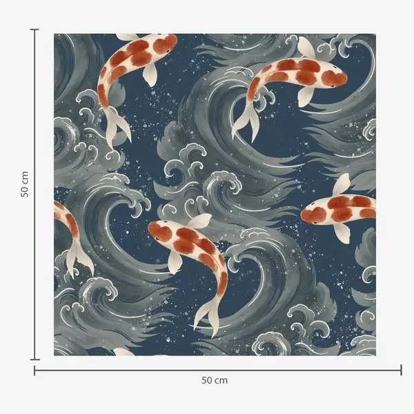 Tapetes Koi zivis peld starp dramatiskām okeāna viļņiem Nr. a01019
